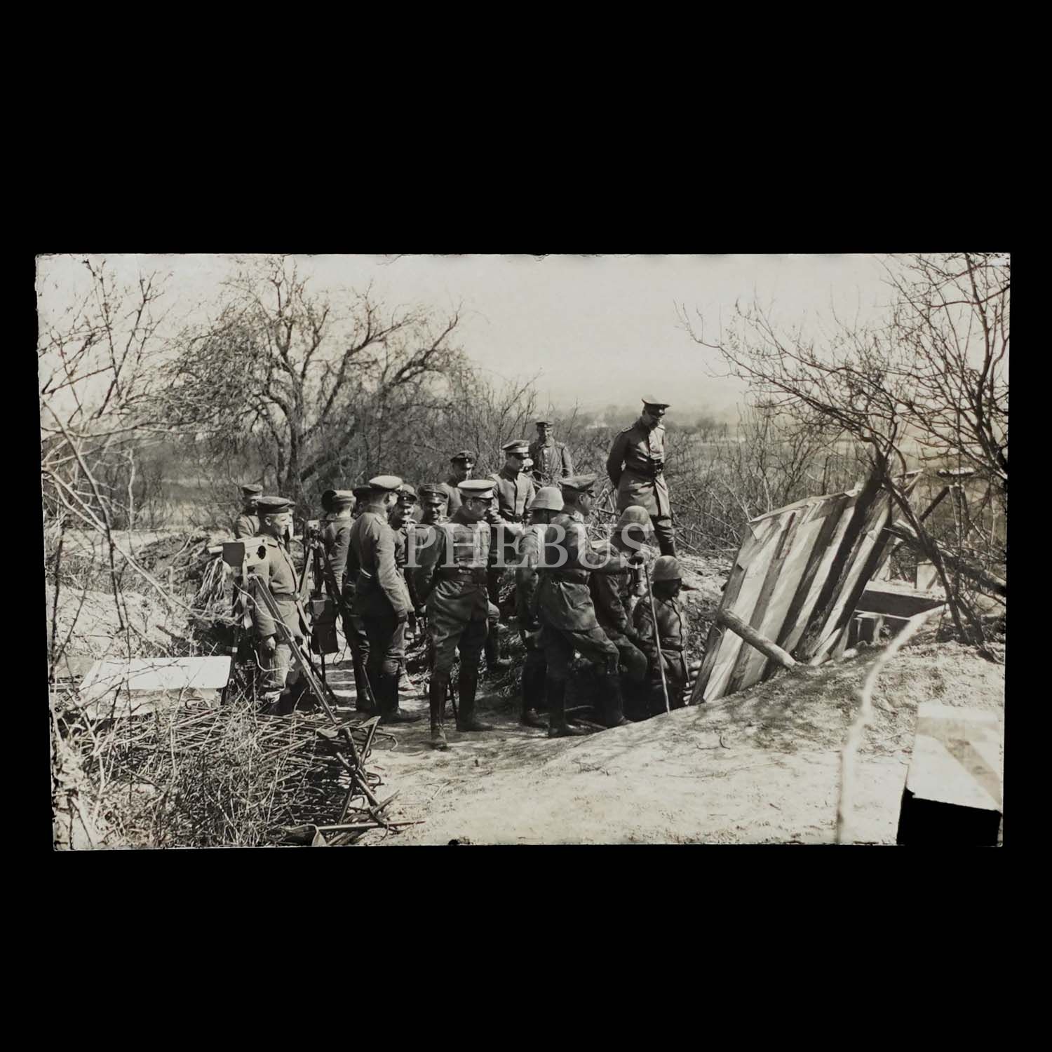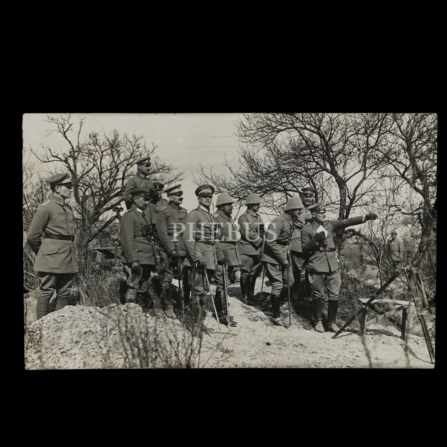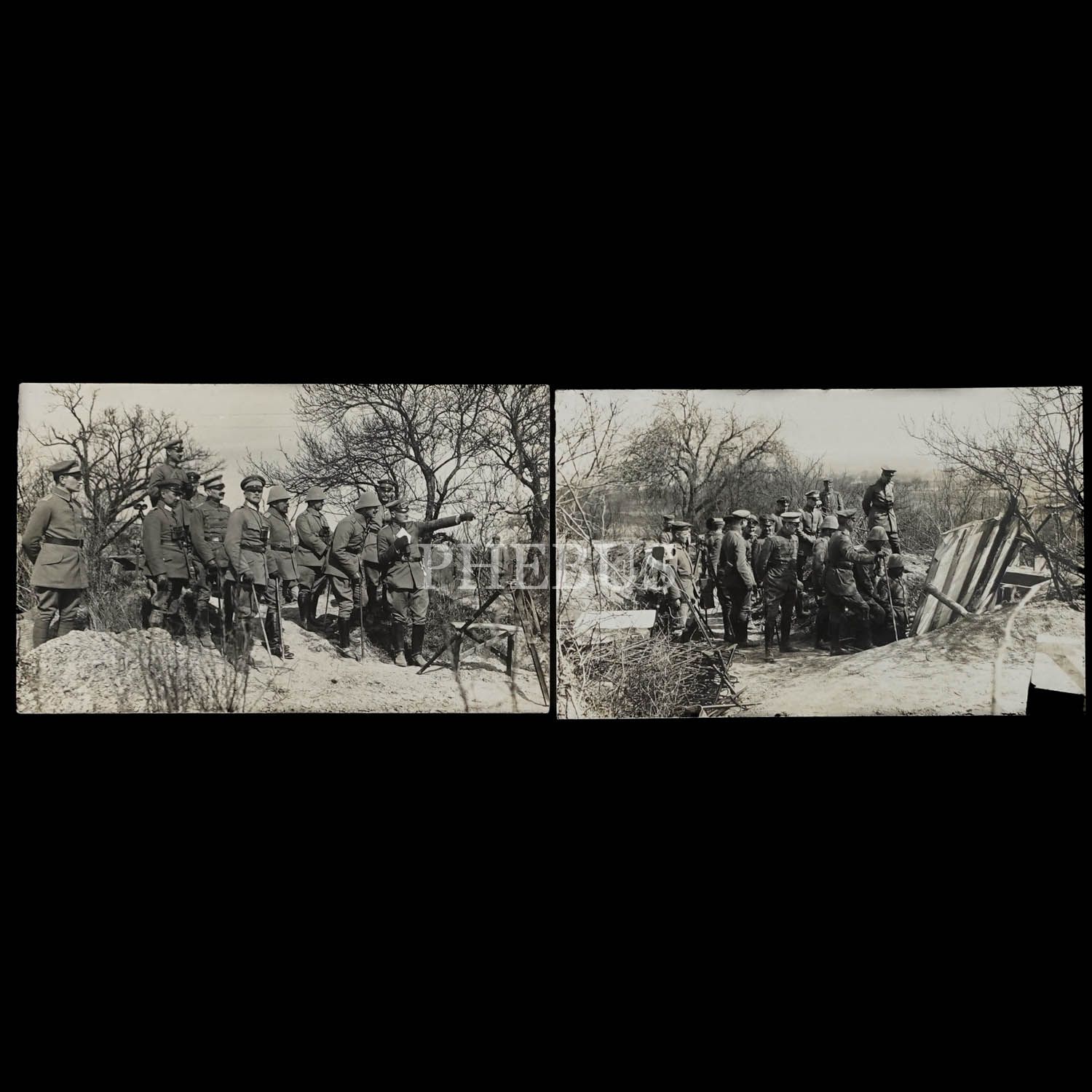 Bir mevzide inceleme yapan Türk ve Alman subayların görüldüğü iki adet enstantane fotoğraf, 14x9 cm...