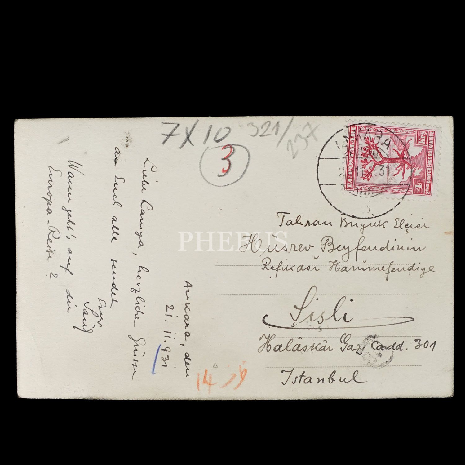 "Tahran Büyük Elçisi Hüsrev Beyfendinin Refikası Hanımefendiye" hitabıyla postalanmıştır.