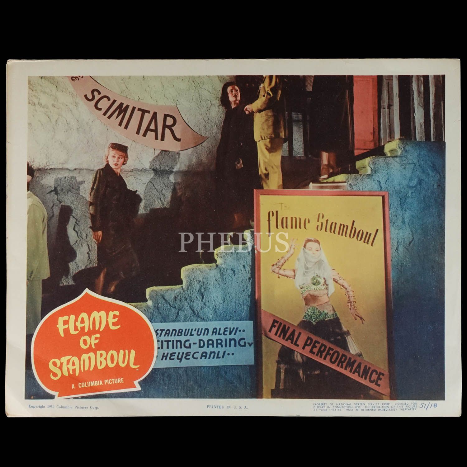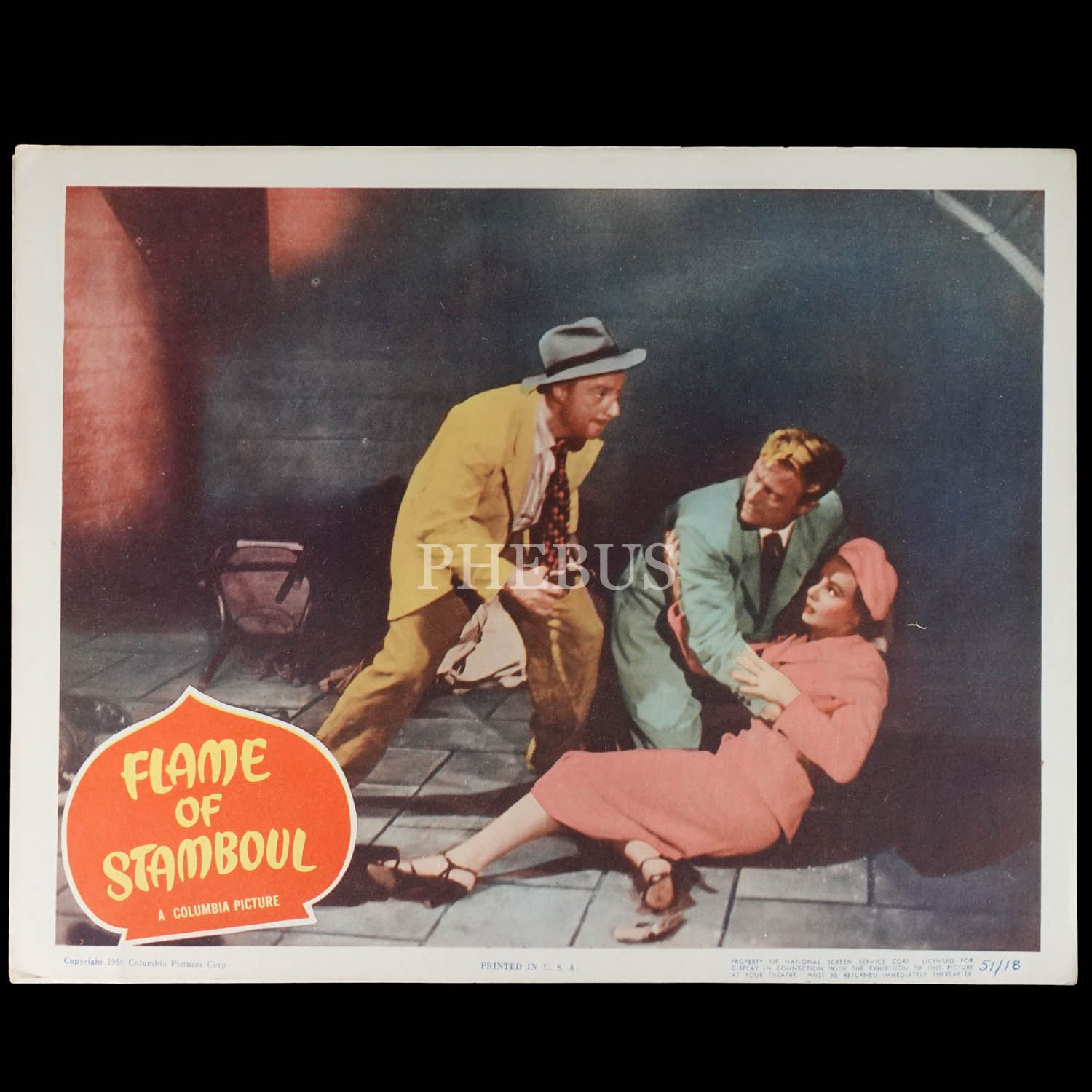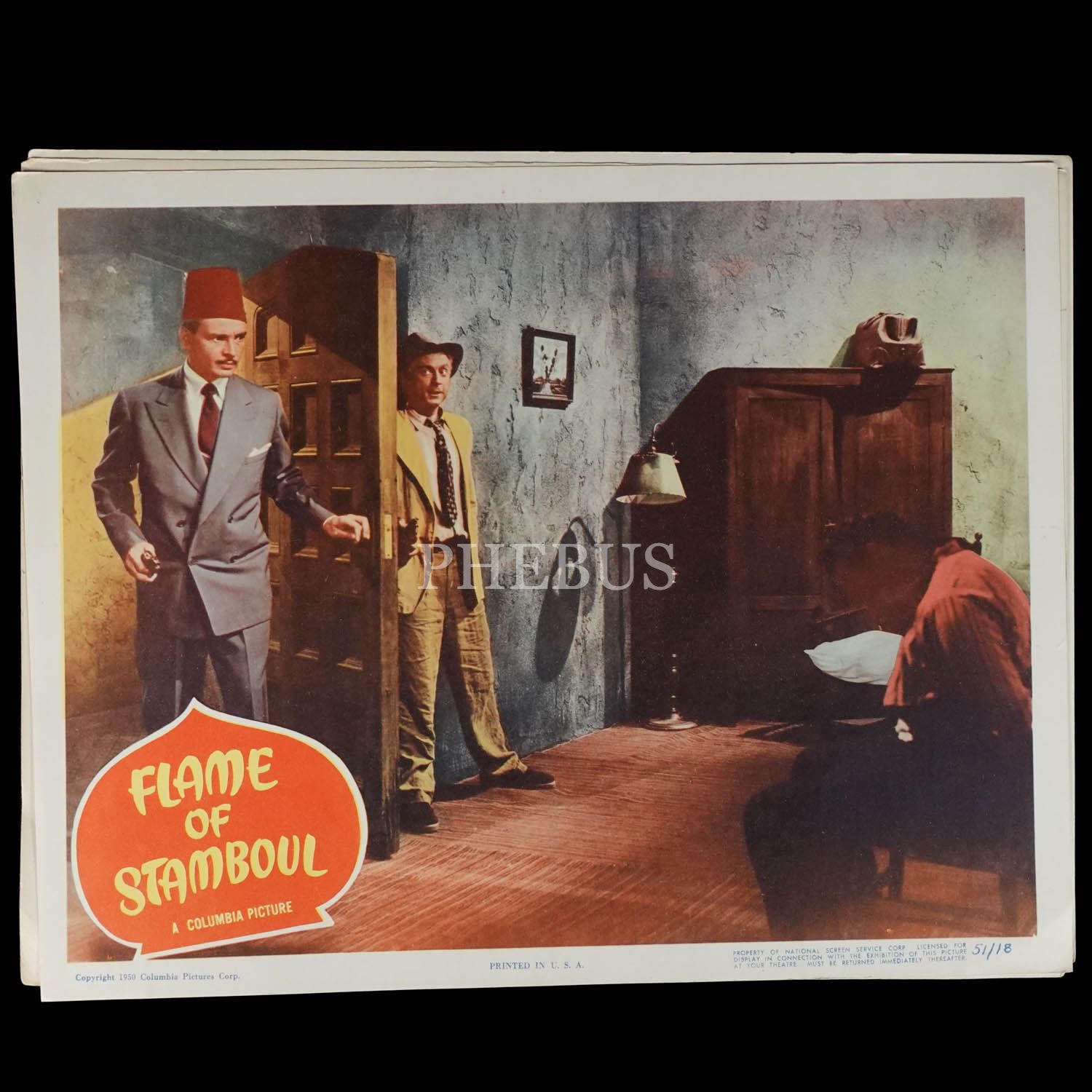 1953 yapımı Amerikan gerilim filmi "Flame of Stamboul"un 8 adet lobi kartı, "Printed in U.S.A.", 36x28 cm...