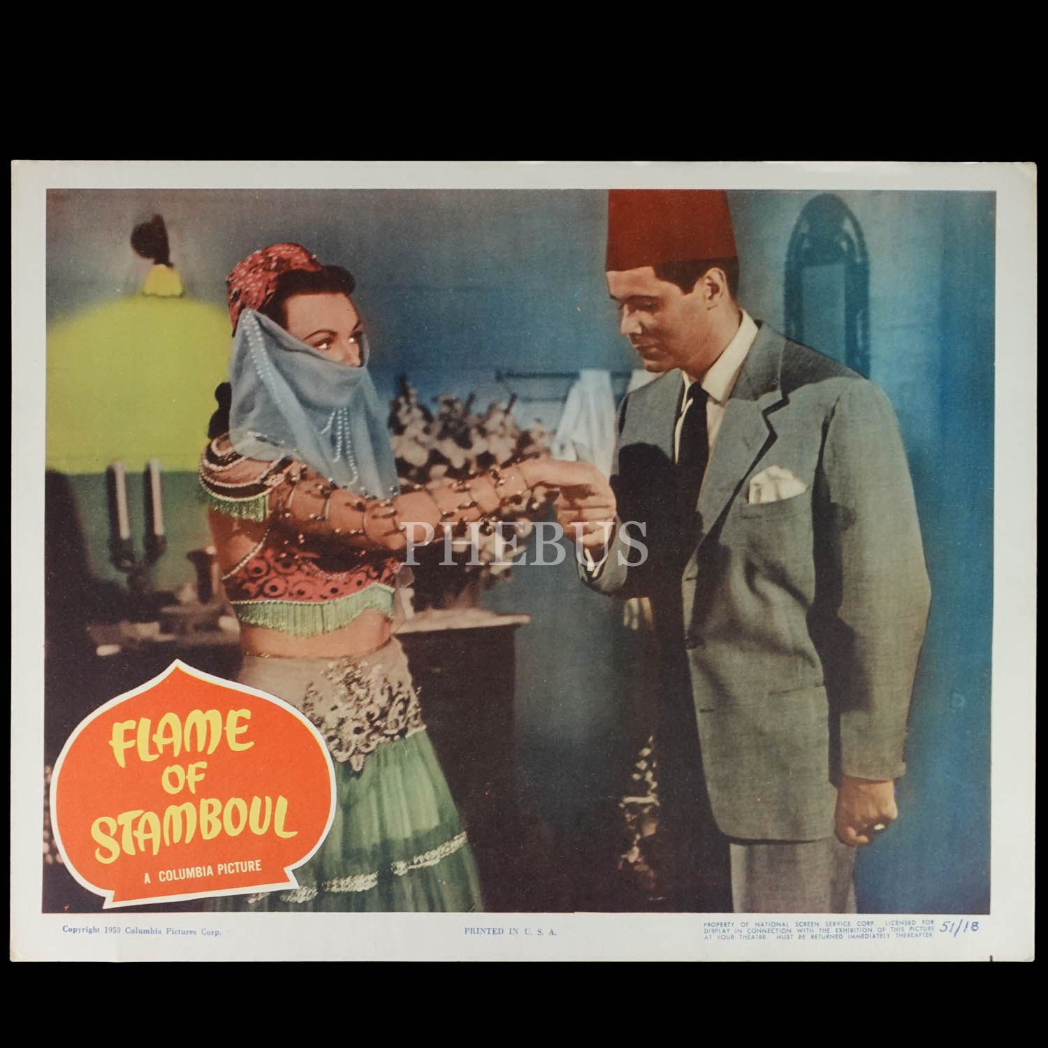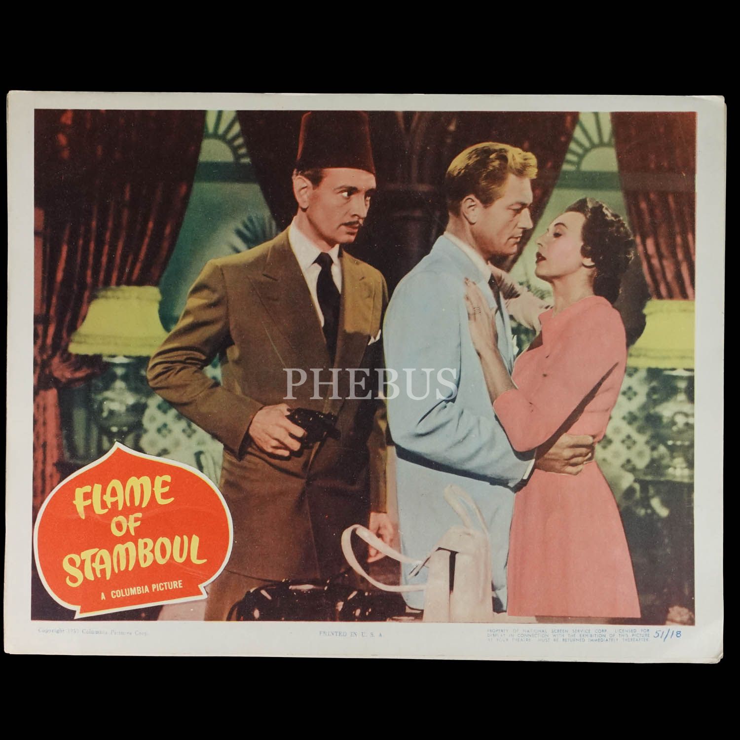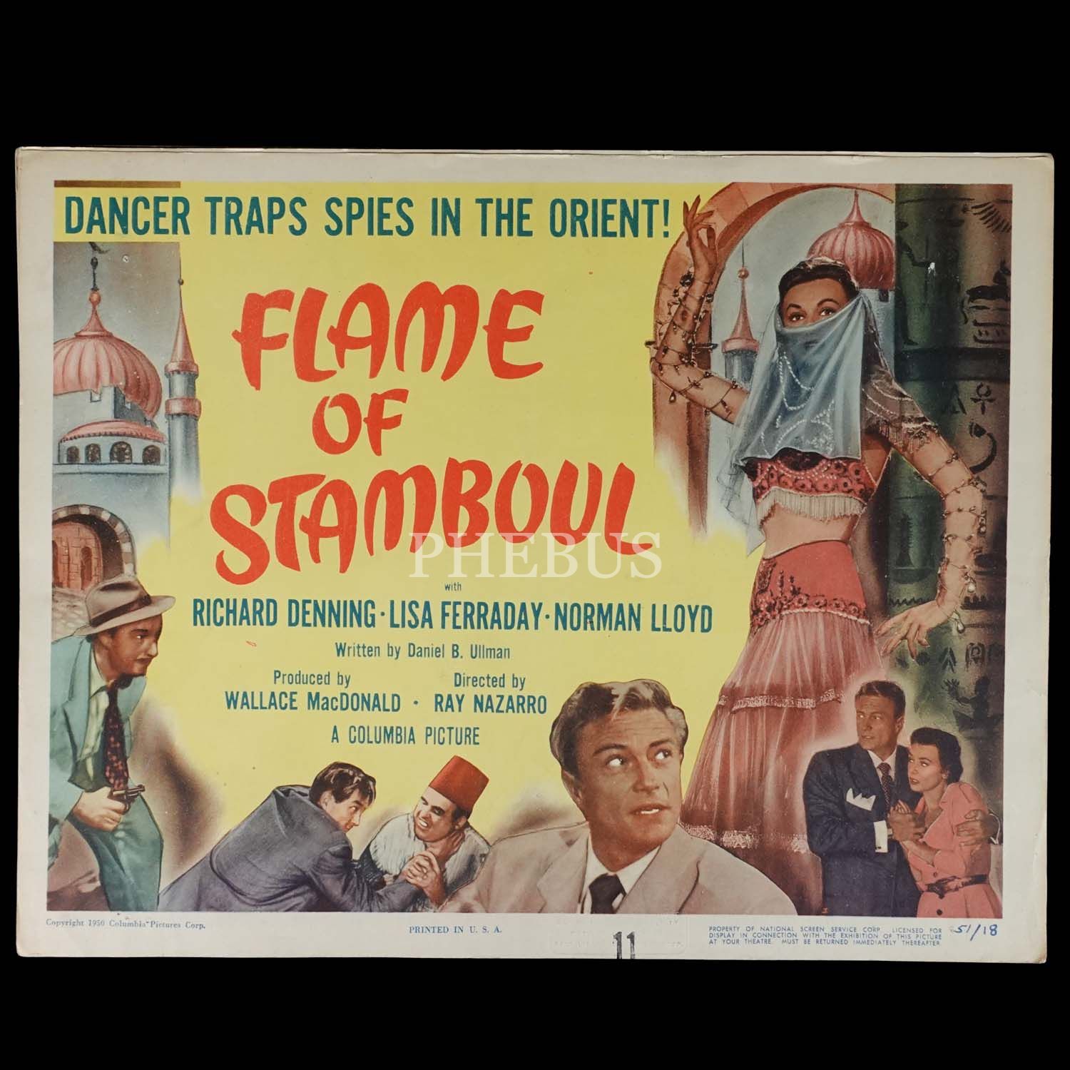 1953 yapımı Amerikan gerilim filmi "Flame of Stamboul"un 8 adet lobi kartı, "Printed in U.S.A.", 36x28 cm...
