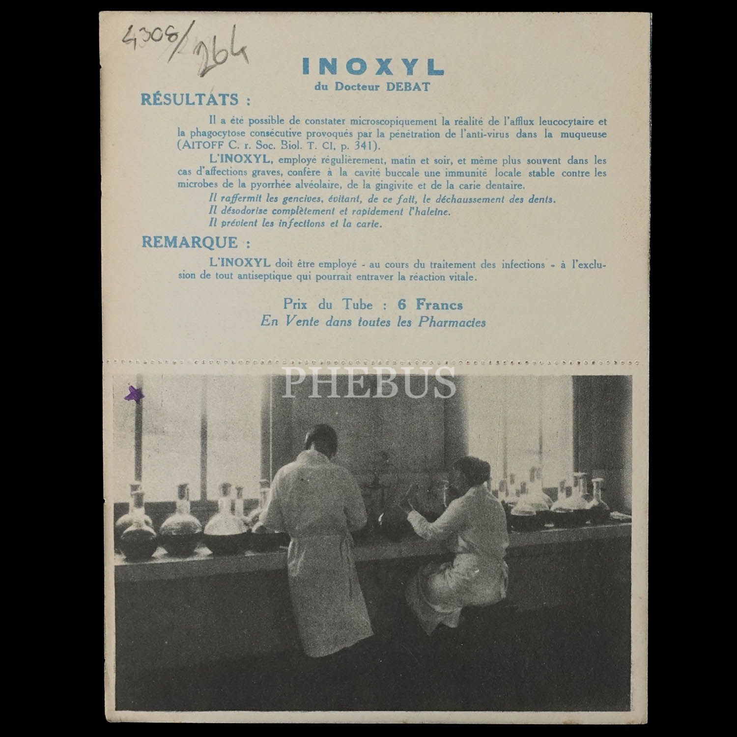Inoxyl Diş Macunu tanıtım broşürü (Fransızca), Laboratoires du Docteur Debat, Paris, 14x18 cm...