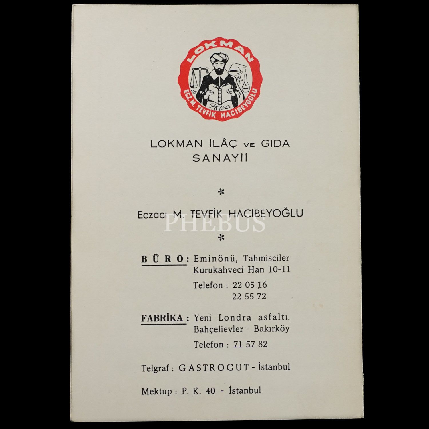 "Lokman İlâçları 1964 Fiat ve Sipariş Kartı", Lokman İlâç ve Gıda Sanayii, Eczacı M. Tevfik Hacıbeyoğlu, 12x17 cm...