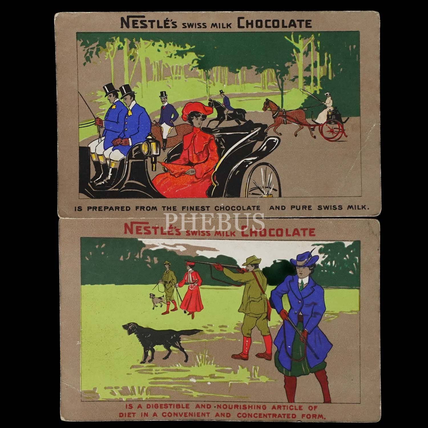 "Nestle" çikolatası reklamlı iki adet kartpostal, Sultan İkinci Abdülhamid tuğralı damga pullu, 14x9 cm...