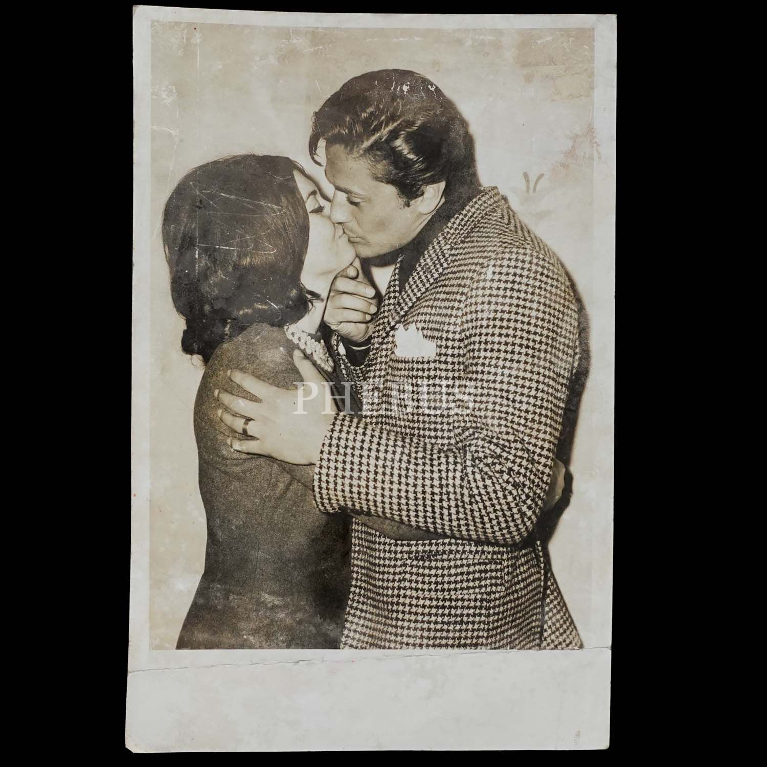 Cüneyt Arkın ve Fatma Girik´in öpüşürken çekilmiş basın fotoğrafı, 12x18 cm...