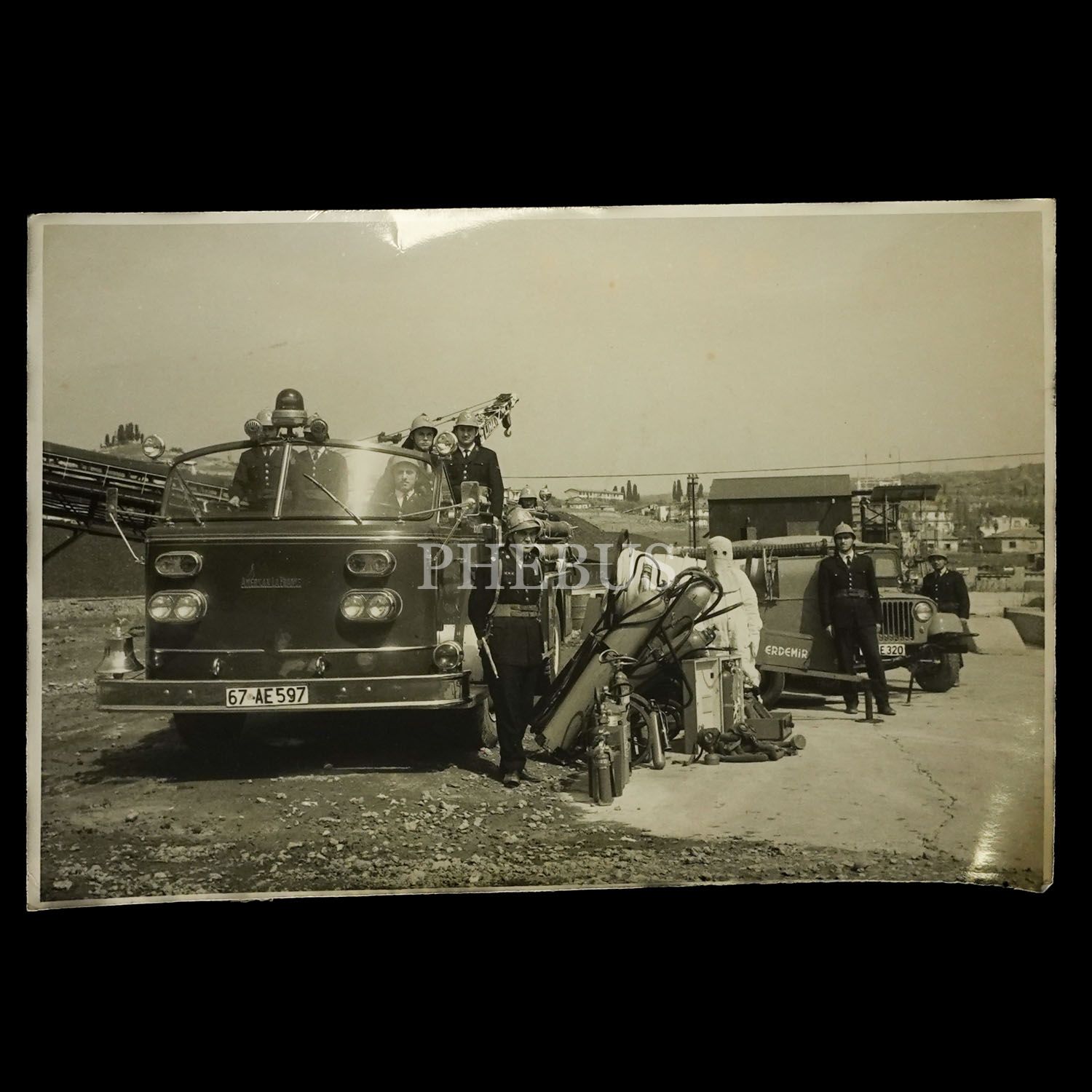 Tatbikat için hazırlanan Türk itfaiye erleri, 18x12 cm...