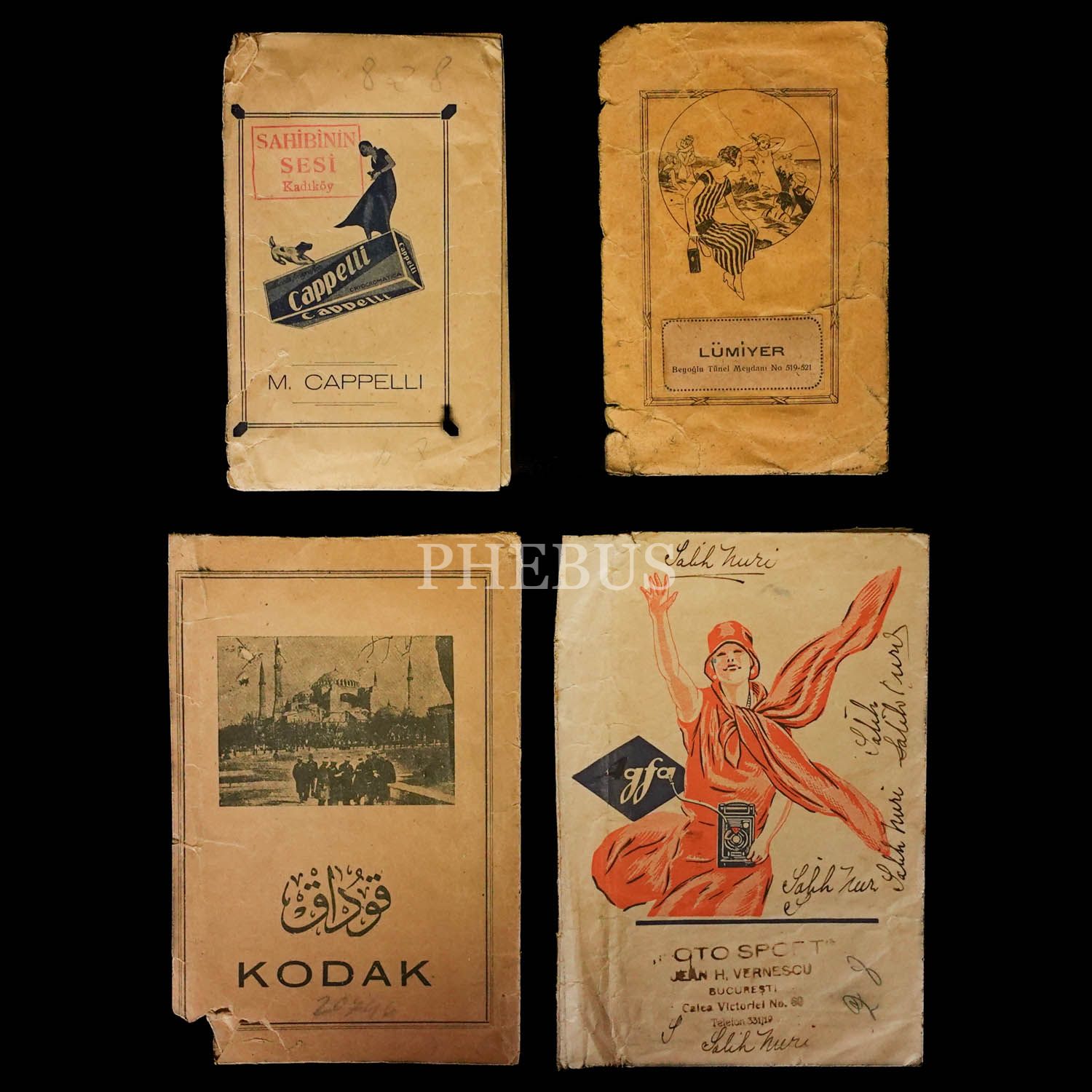 Üçünün içi negatif fotoğraflarla dolu dört adet fotoğraf zarfı, tamamı Erken Cumhuriyet dönemine ait zarflardan biri (Kodak reklamlı) Osmanlıca yazılıdır, muhtelif ebatlarda...