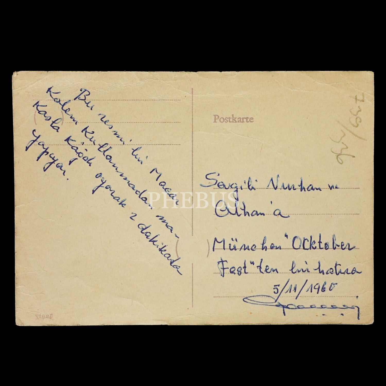 München´de düzenlenen Oktoberfest´i ziyaret eden bir Türk´ün, festival alanında bulunan bir Macar sanatçı tarafından ´kalem kullanmadan´ hazırlanan portresi, 5 Kasım 1960, 11x15 cm...