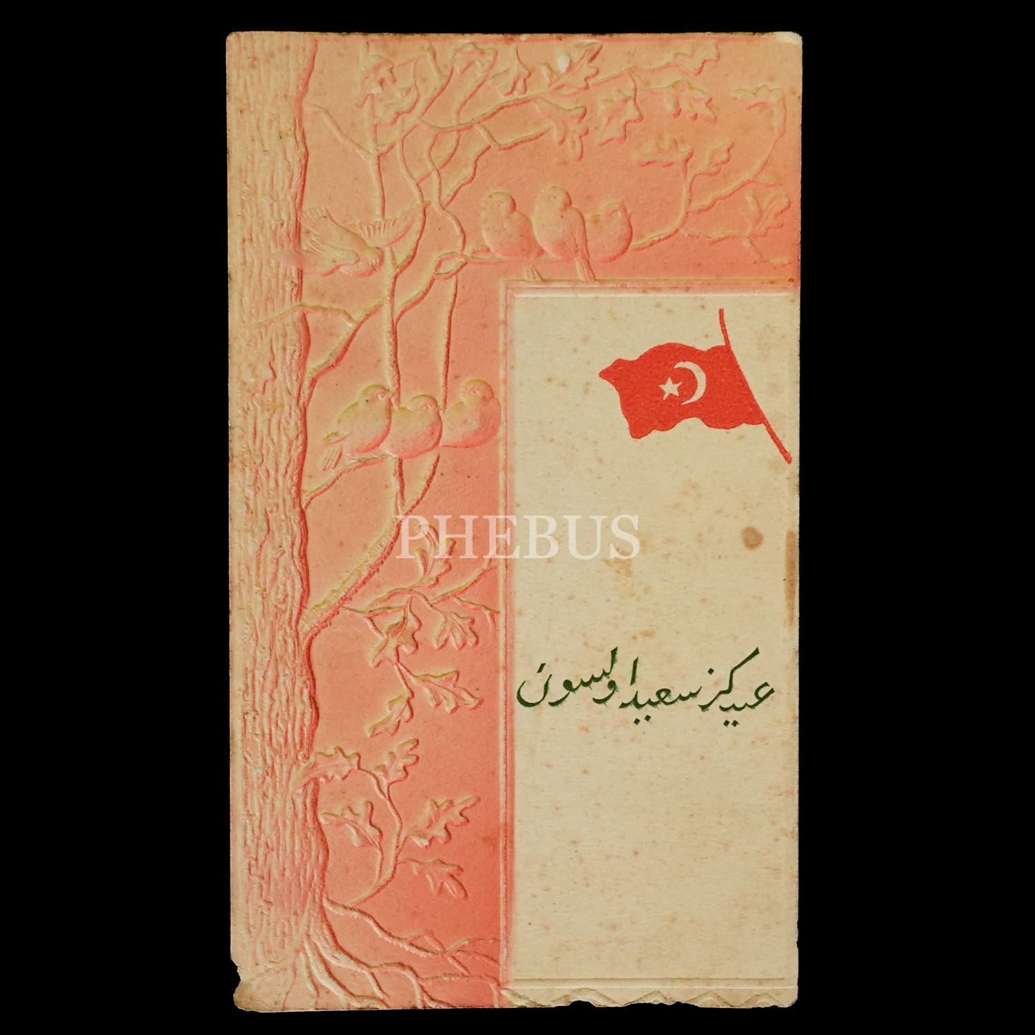 Türk bayrağı görselli gofre bayram tebrik kartı, 14x8 cm...