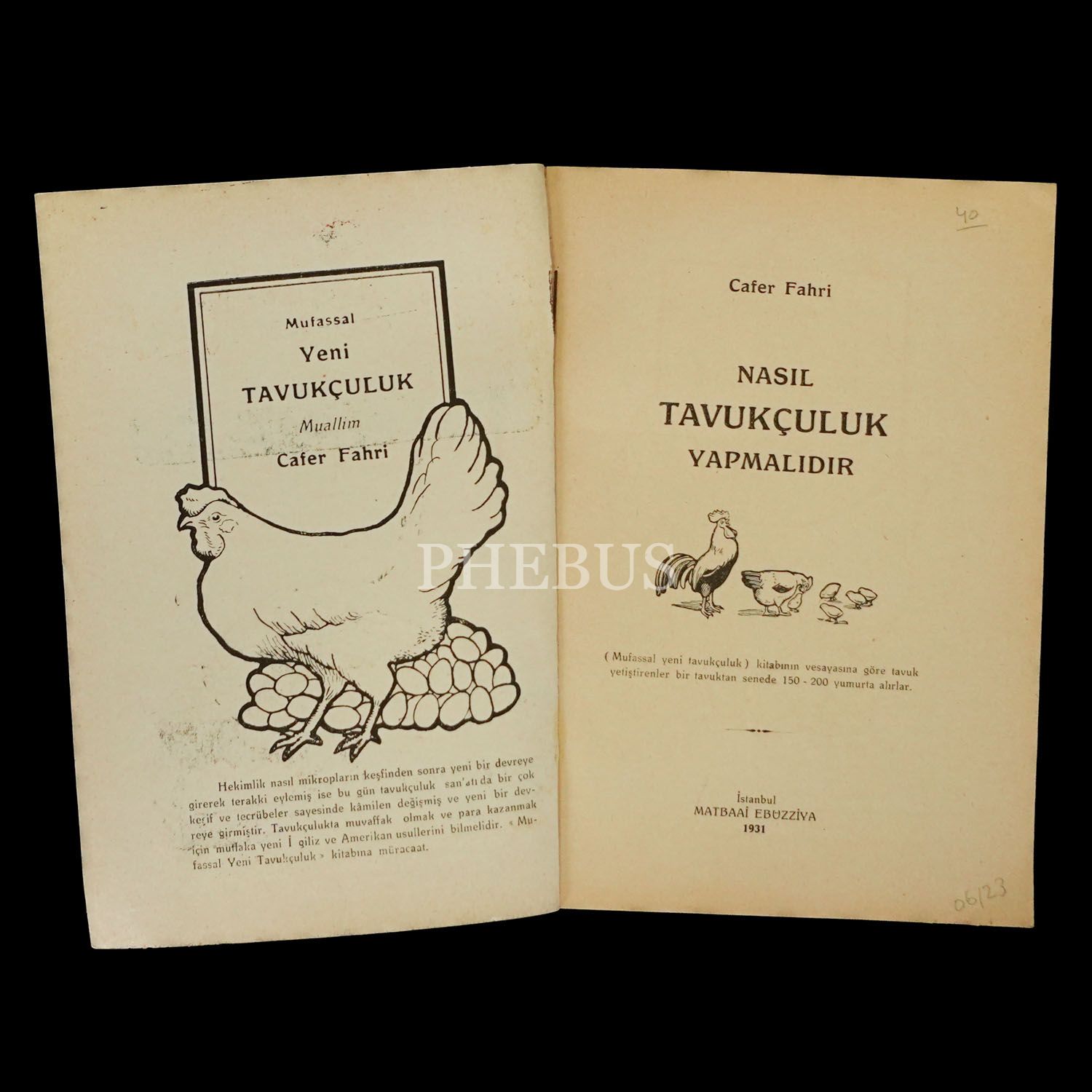 NASIL TAVUKÇULUK YAPMALIDIR, Cafer Fahri, 1931, Matbaai Ebüzziya, 45 sayfa, 14x20 cm...