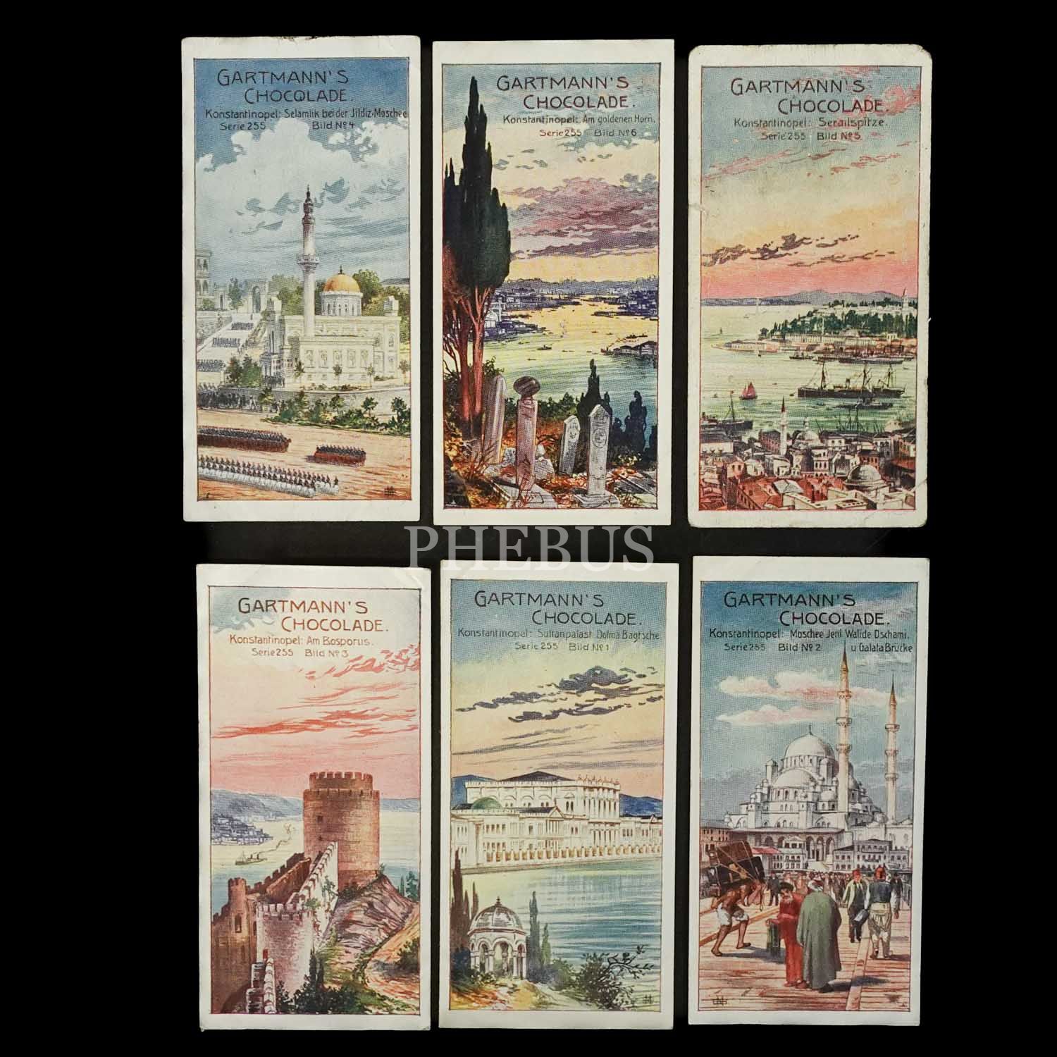 İstanbul´dan (Konstantinopel) manzaralar içeren 6 adet çikolata kartı, Gartmann´s Chocolate, 5x9 cm....