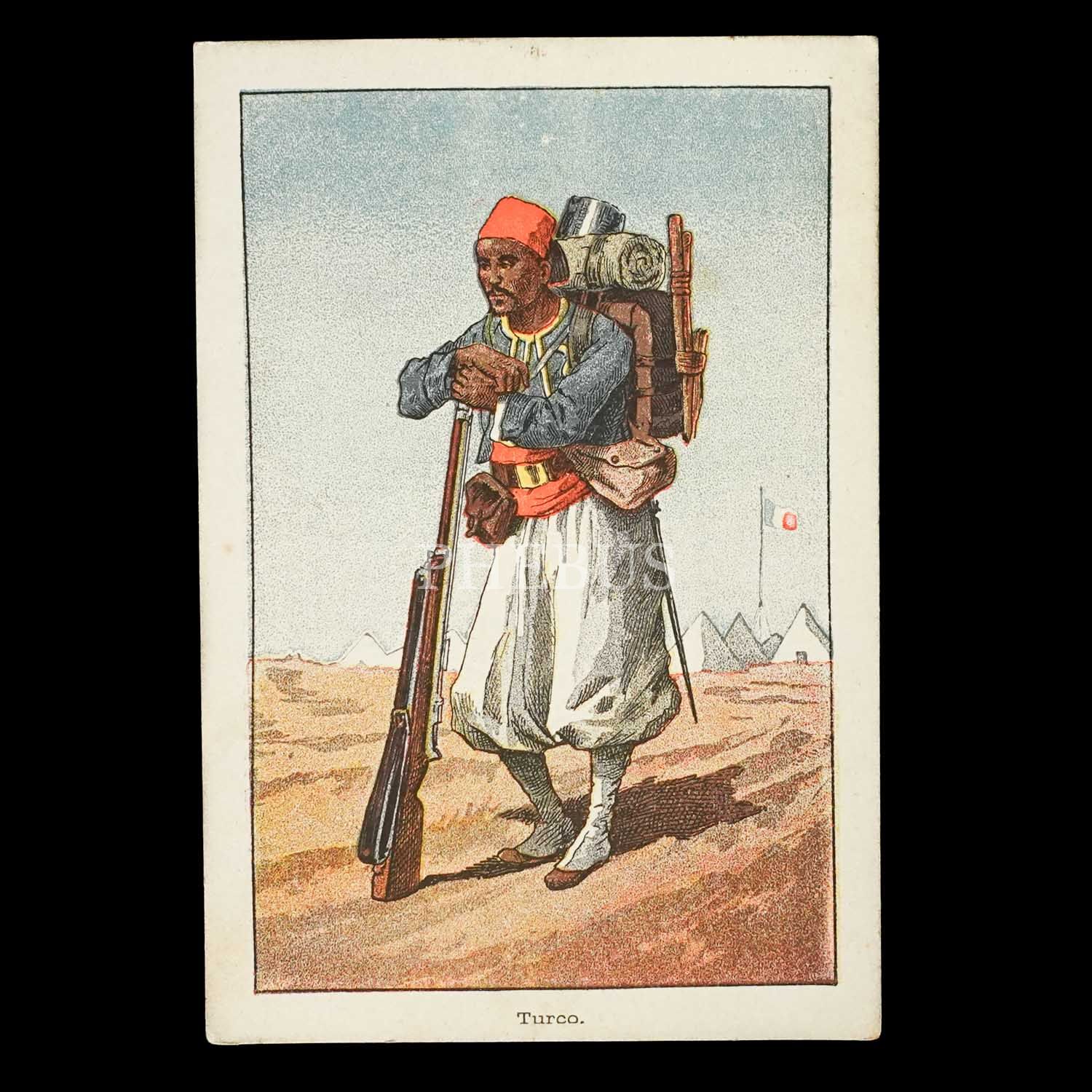 Türk askeri görselli, eczane reklamlı kart, "Turco", G. Thevenot, 9x13 cm...