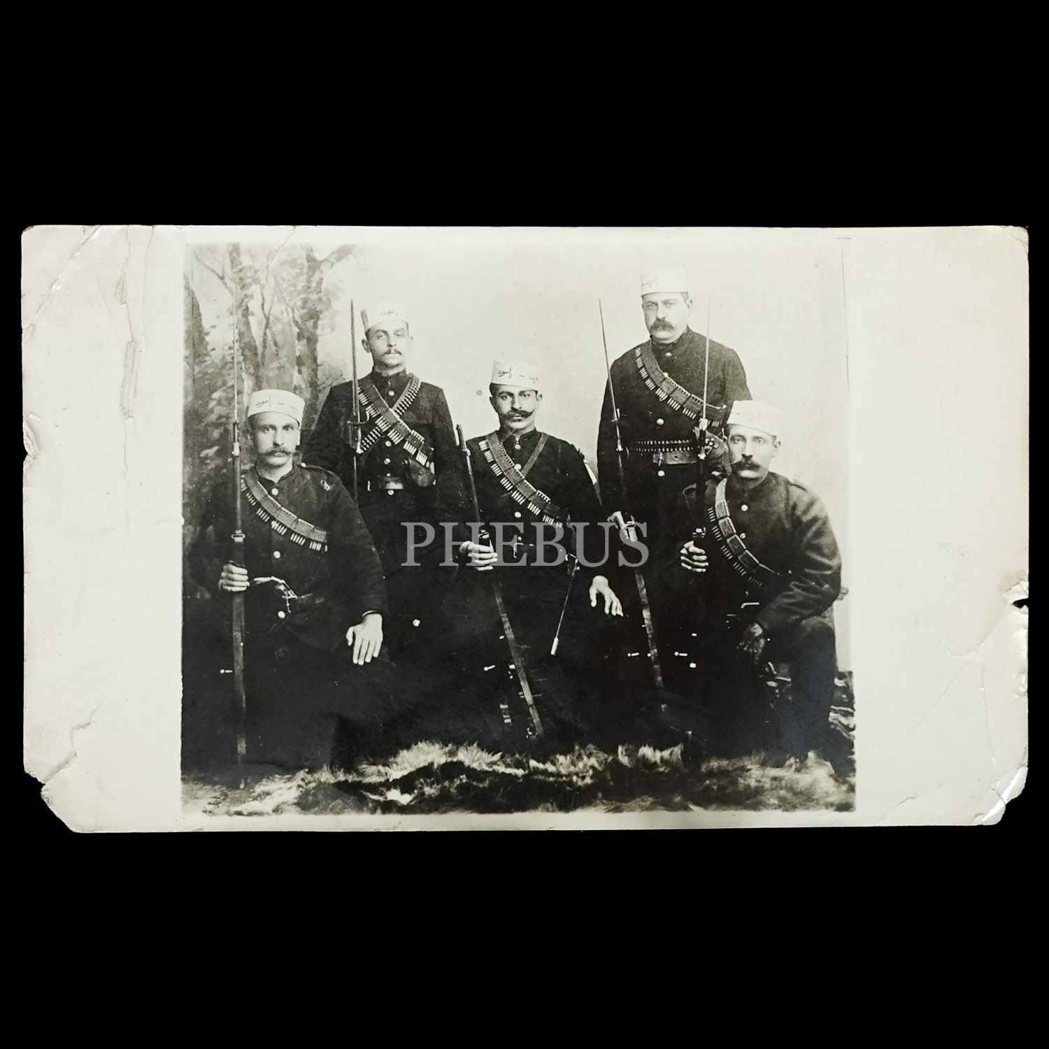 Başlıklarında "Ya Hürriyet Ya Mevt (ölüm)" yazılı askerlerin hatıra fotoğrafı, 14x9 cm...