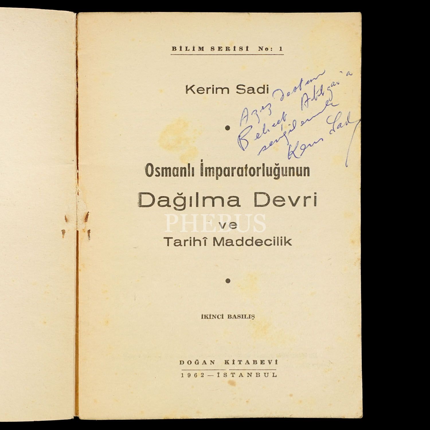 OSMANLI İMPARATORLUĞUNUN DAĞILMA DEVRİ VE TARİHÎ MADDECİLİK, Kerim Sadi, 1962, Doğan Kitabevi, 54 sayfa, 14x20 cm...