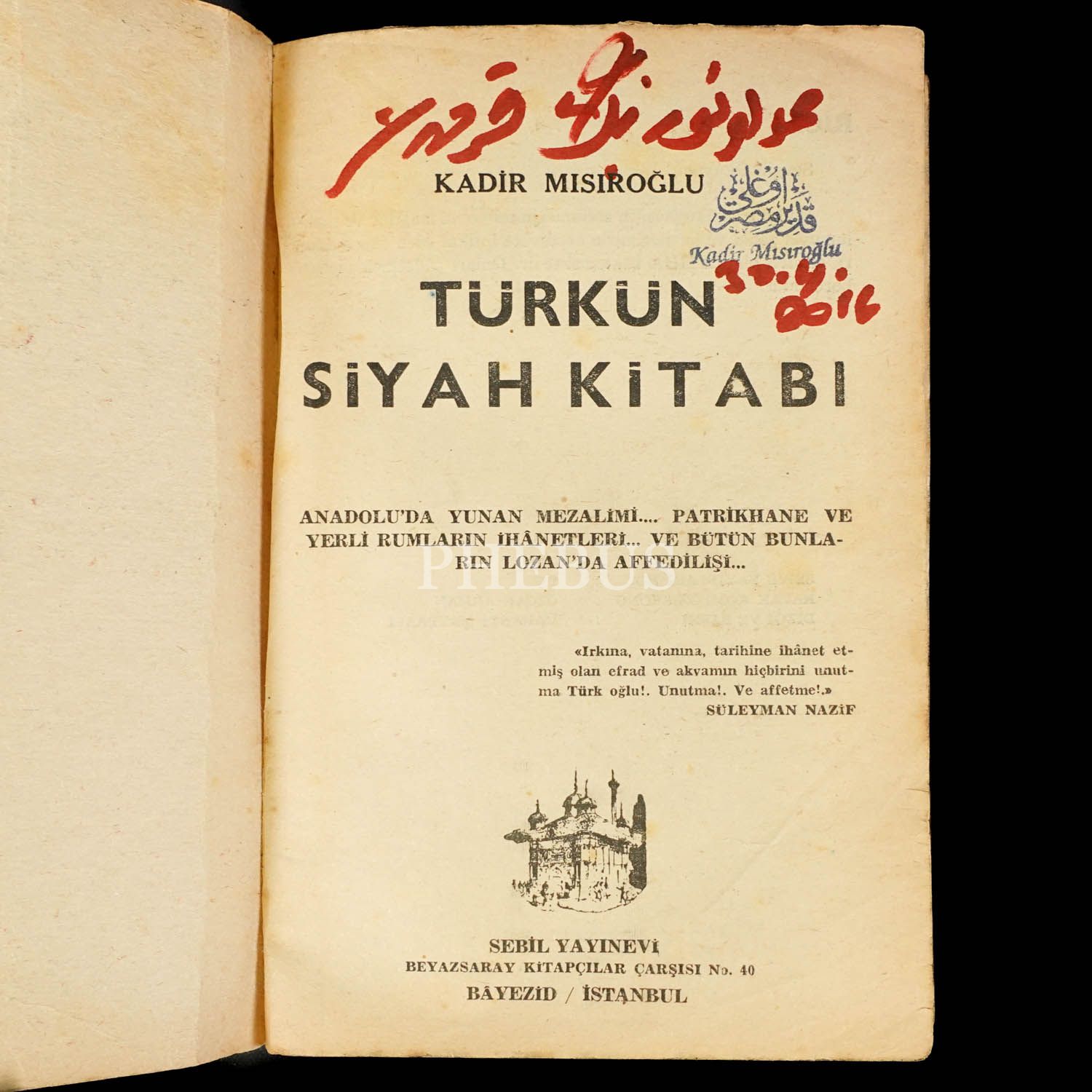 TÜRKÜN SİYAH KİTABI (Anadolu´da Yunan Mezalimi... Patrikhane ve Yerli Rumların İhânetleri... Ve Bütün Bunların Lozan´da Affedilişi...), Kadir Mısıroğlu, 1966, Sebil Yayınevi,