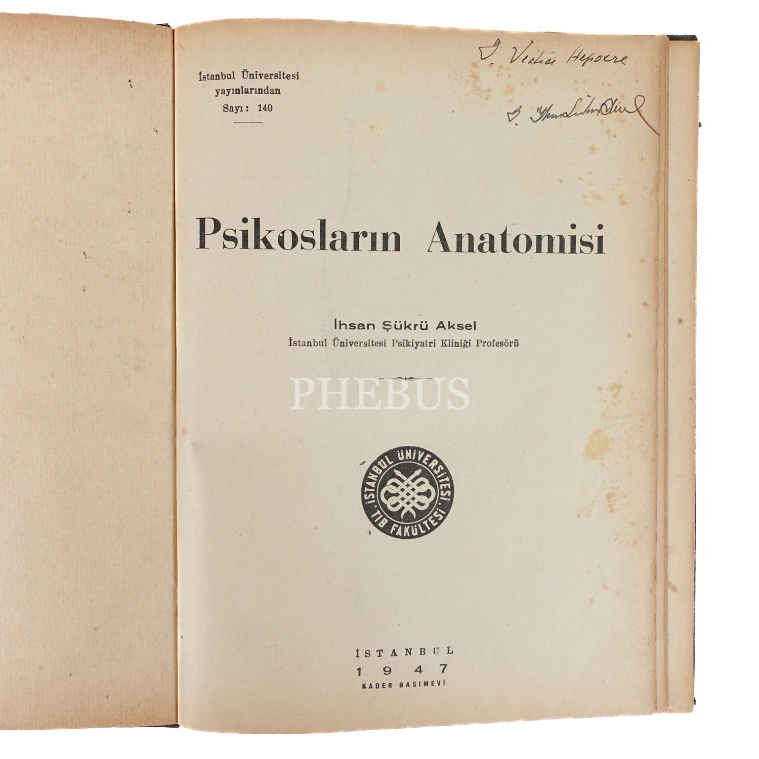PSİKOSLARIN ANATOMİSİ, İhsan Şükrü Aksel, 1947, İstanbul Üniversitesi Yayınlarından Sayı: 140, Kader Basımevi, 94 sayfa metin + görseller, 18x23 cm...