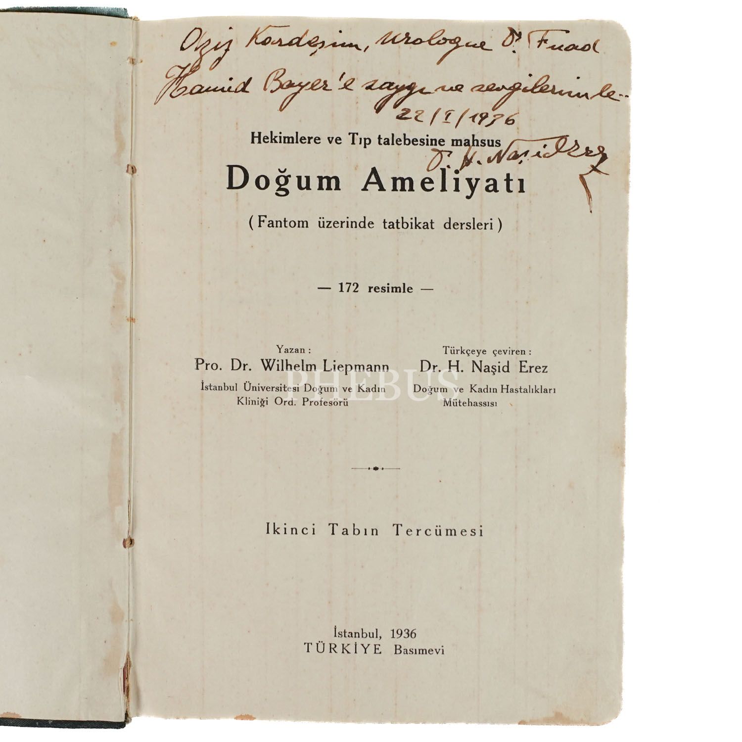 Hekimlere ve Tıp Talebesine mahsus DOĞUM AMELİYATI (Fantom üzerinde tatbikat dersleri), Wilhelm Liepmann, (Türkçeye çeviren: H. Naşid Erez), 1936, Türkiye Basımevi, 300 sayfa, 15x20 cm...