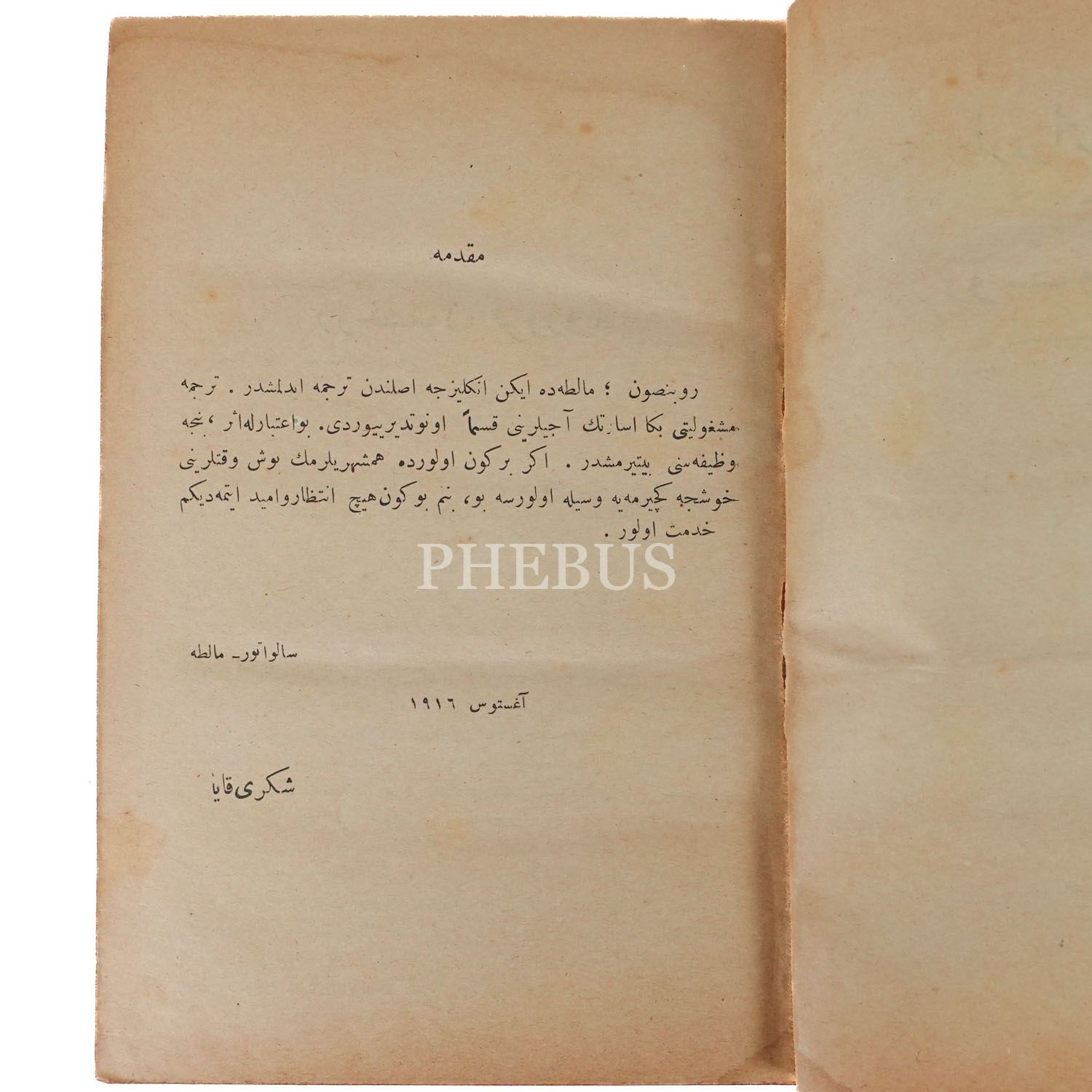 ROBINSON CRUSOE, Daniel Defoe, (Çeviren: Şükrü Kaya), 1923, Tanin Matbaası, 439 sayfa, 21x14 cm...
