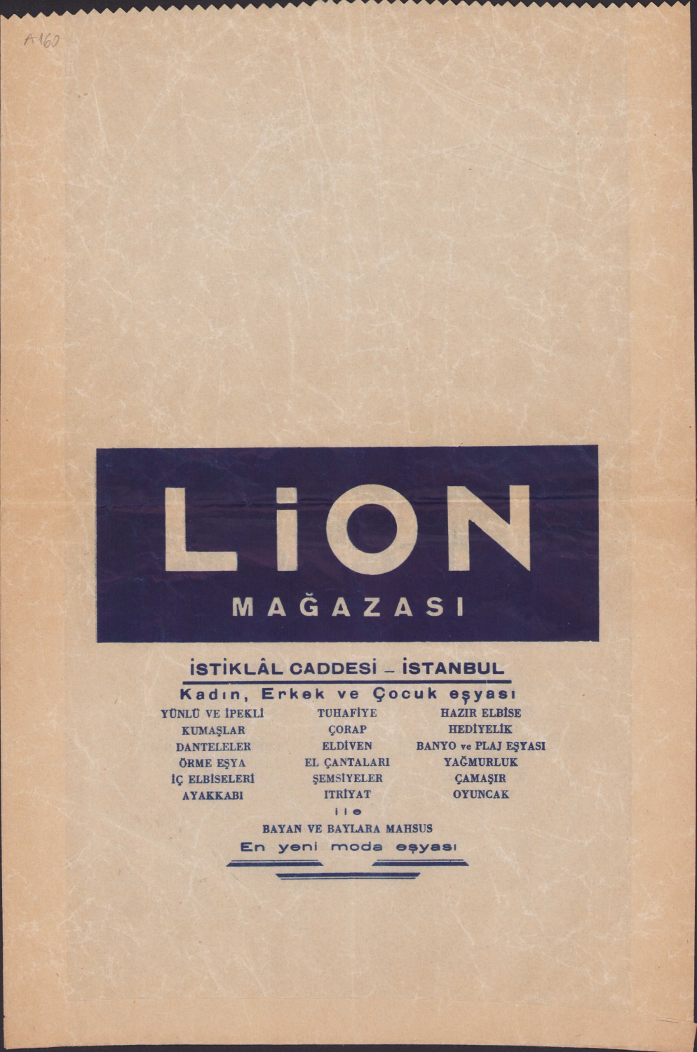 Lion Mağazası kese kağıdı, İstiklal Caddesi adresli, büyük boy