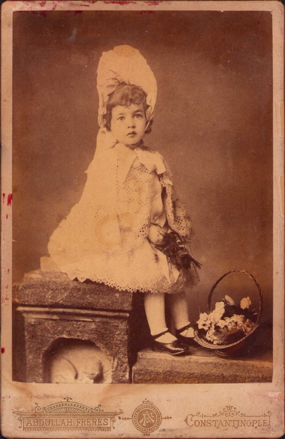 Photo Abdullah Freres kabin fotoğrafı, Osmanlı dönemi levanten çocuk, haliyle, 10x15 cm