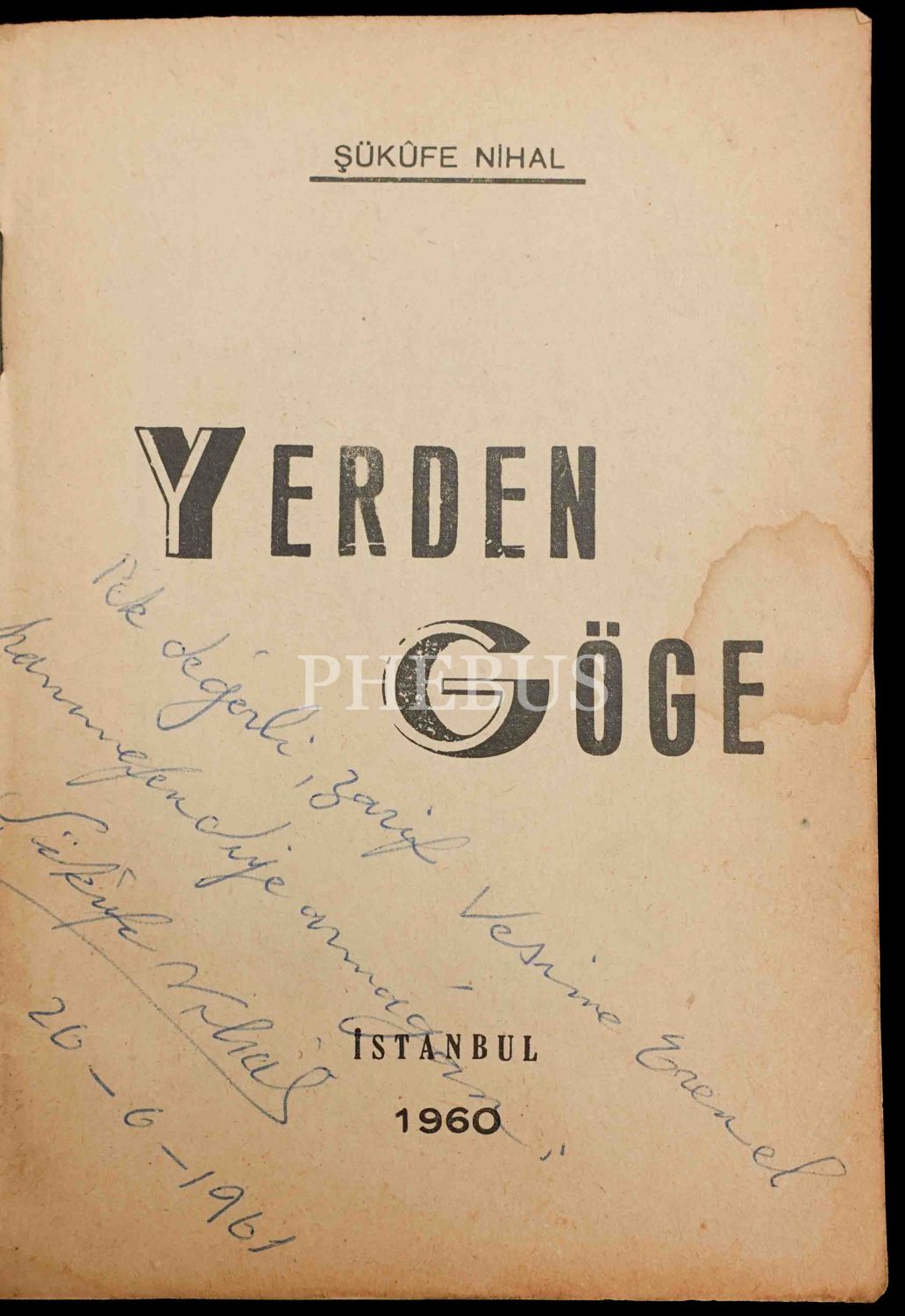 YERDEN GÖĞE, Şükûfe Nihal, 1960, La Turquie Moderne Matbaası, 12x17 cm...