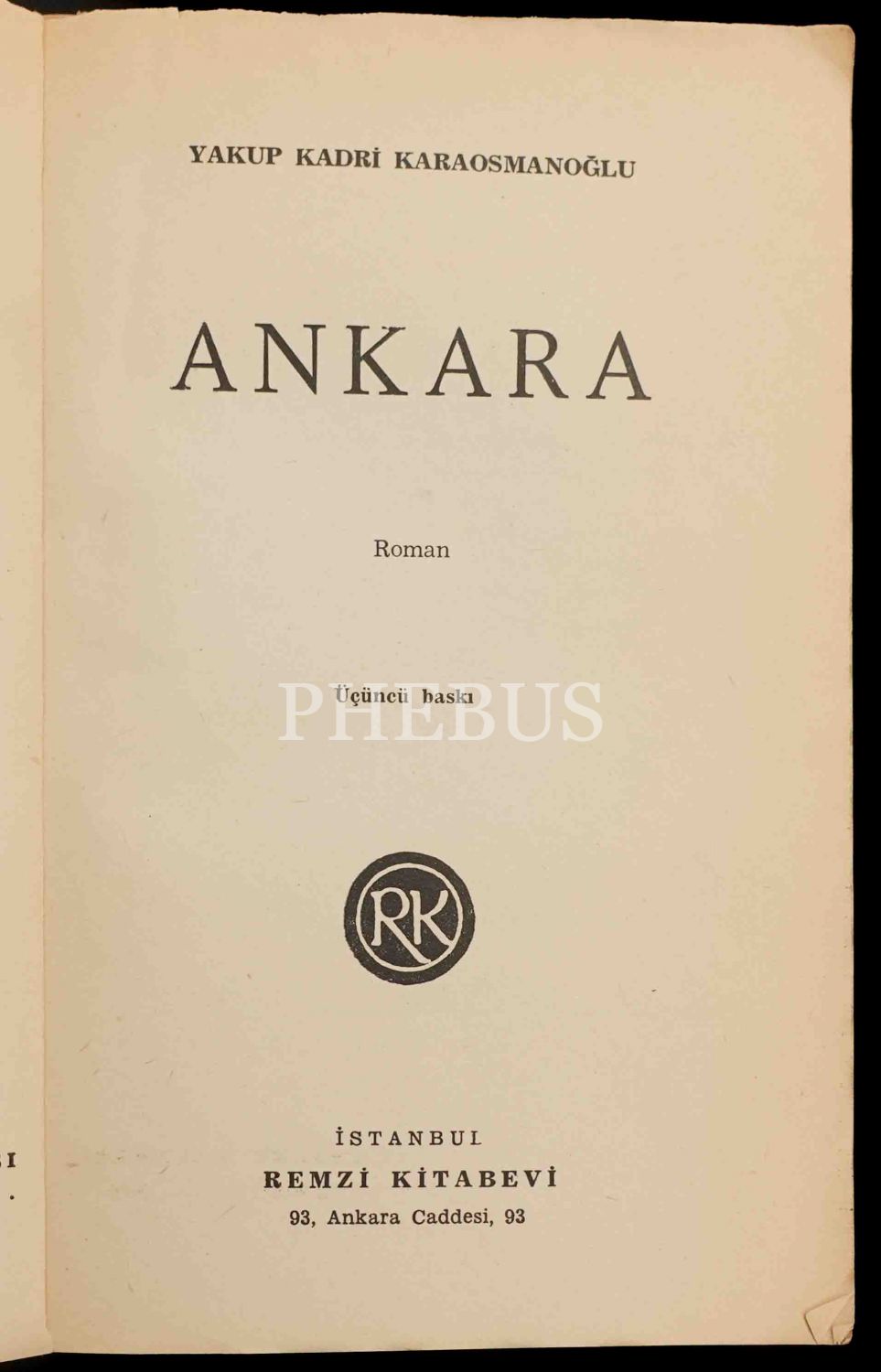 ANKARA, Yakup Kadri Karaosmanoğlu, 1964, Remzi Kitabevi, 224 sayfa, 14x20 cm...
