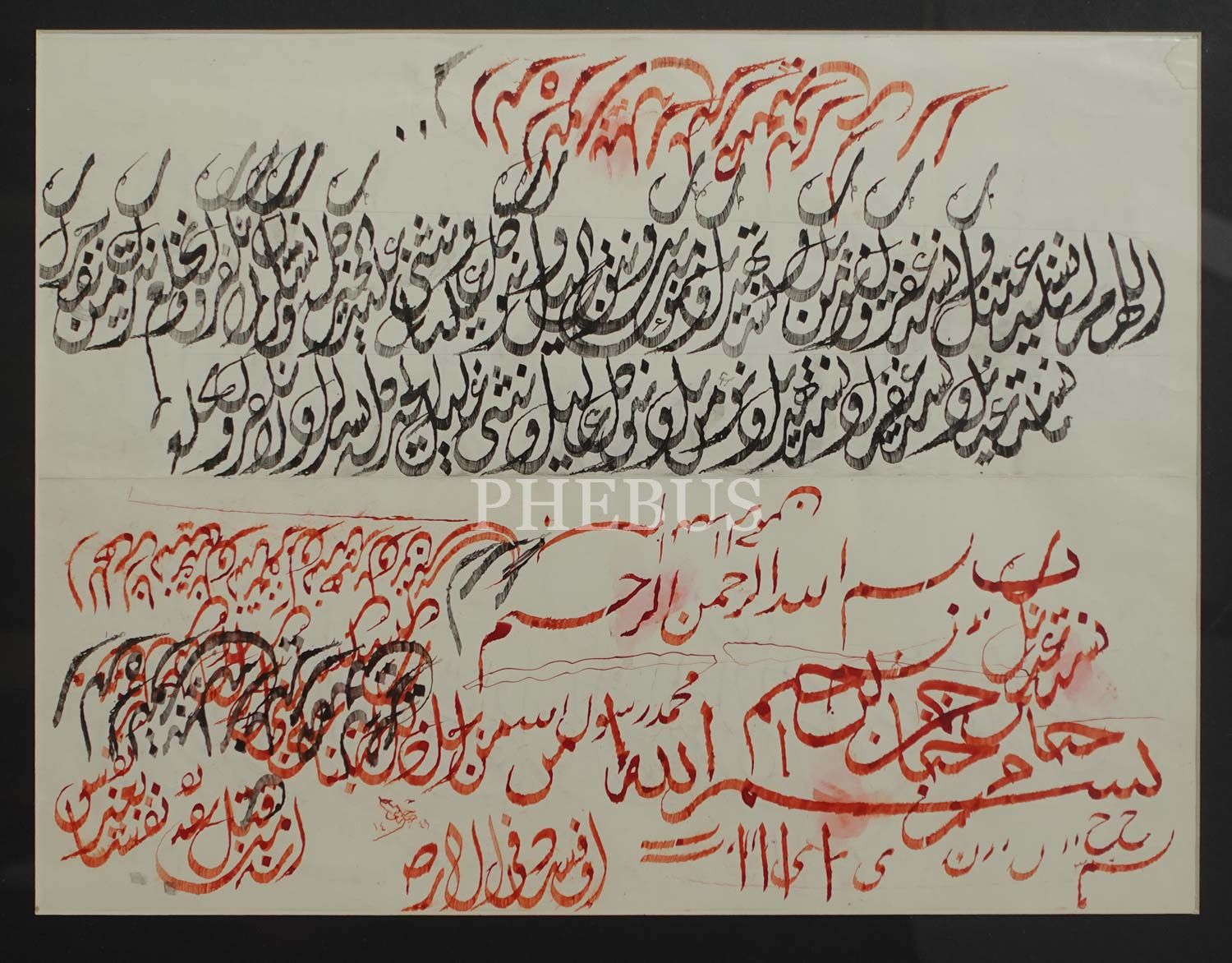 Hasan Çelebi´nin celi divani - sülüs - talik karalaması, yazı ölçü: 40x30 cm, çerçeve ölçü: 69x59 cm...