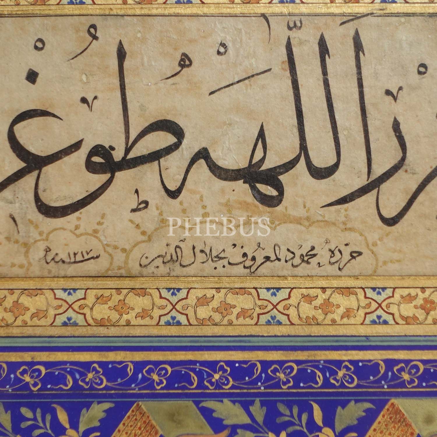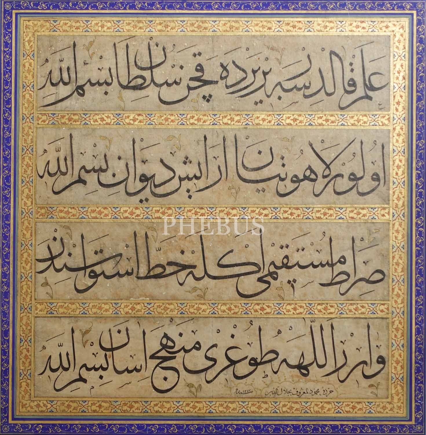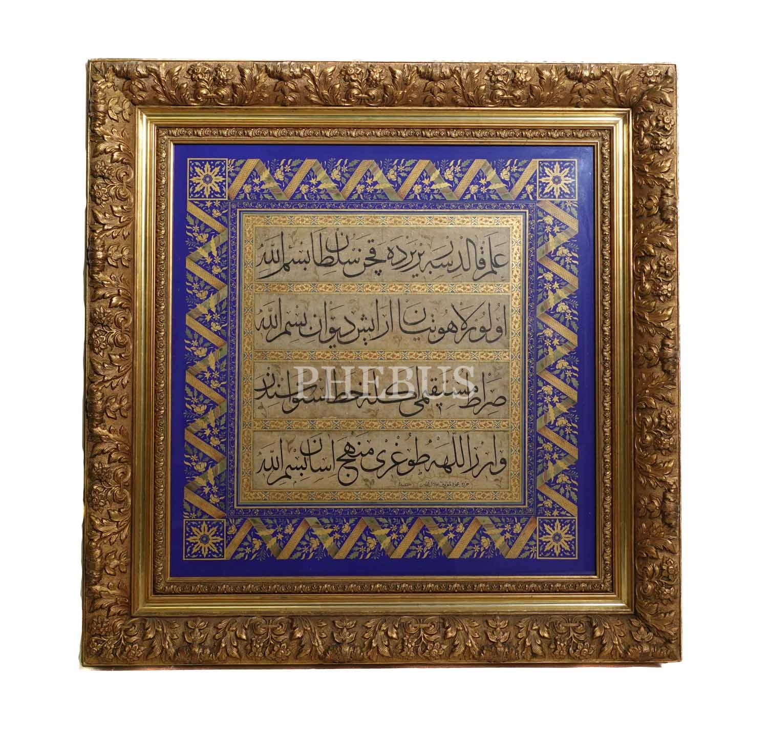 Mahmud Celaleddin ketebeli sülüs levha, 1317 tarihli, çerçeve içi: 57x56 cm, çerçeve ölçü: 79x78 cm...