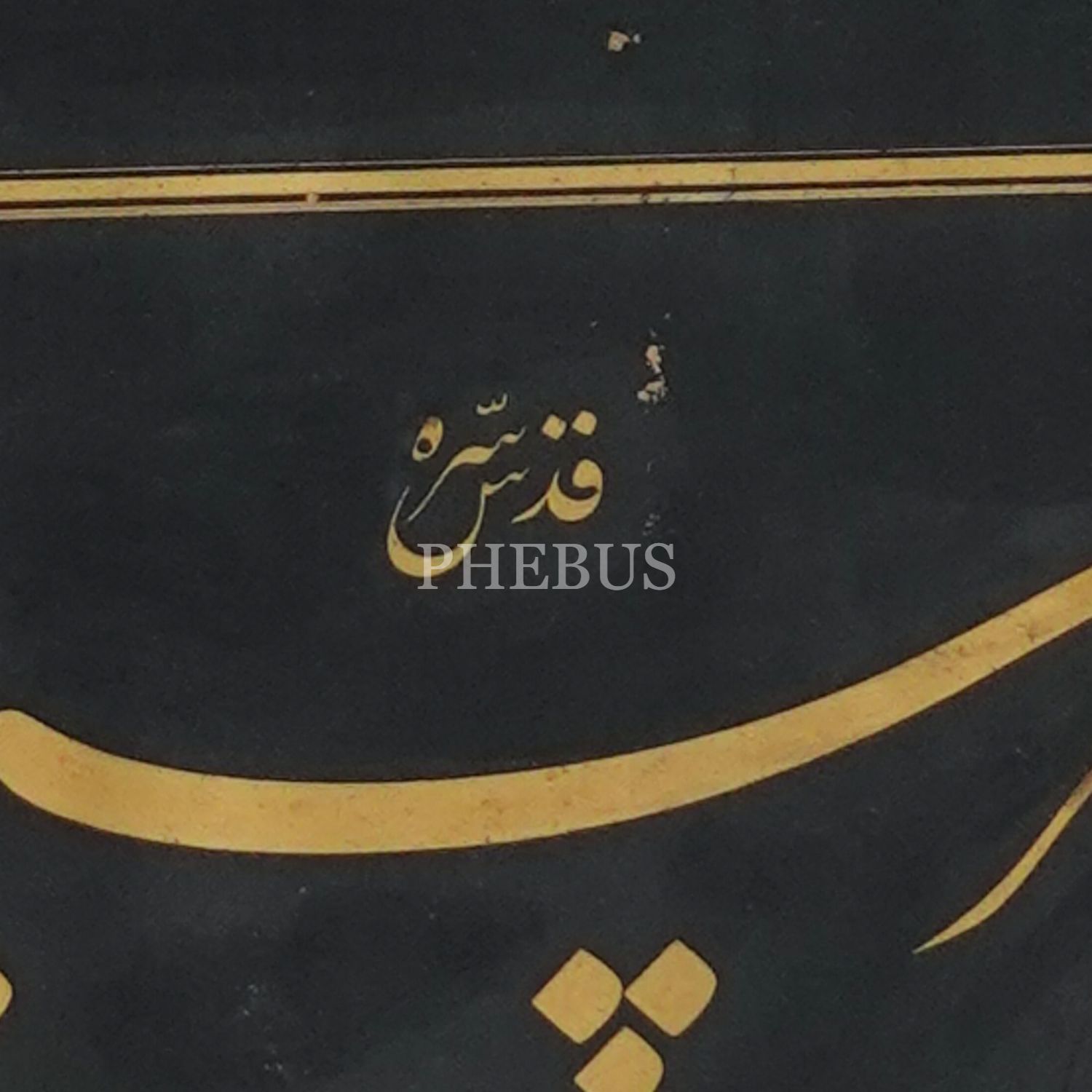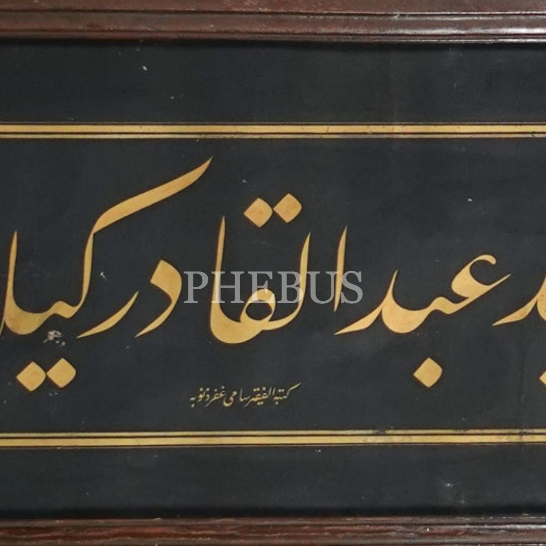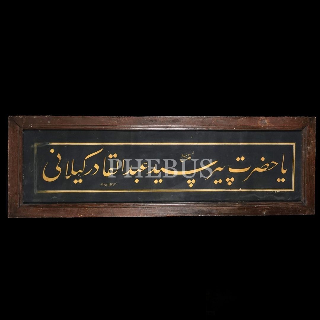 Sami Efendi ketebeli celi talik zerendûd hat levha, "Ya Hazreti Pir Seyyid Abdülkadir Geylânî Kuddise Sirruh", çerçeve ölçü: 135x44 cm...