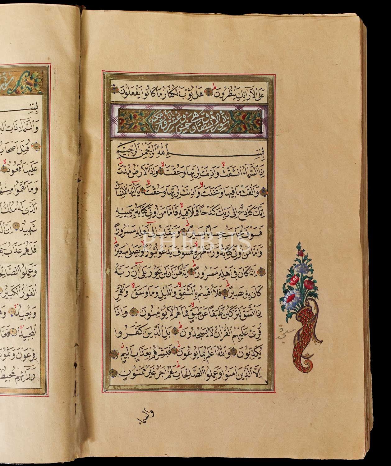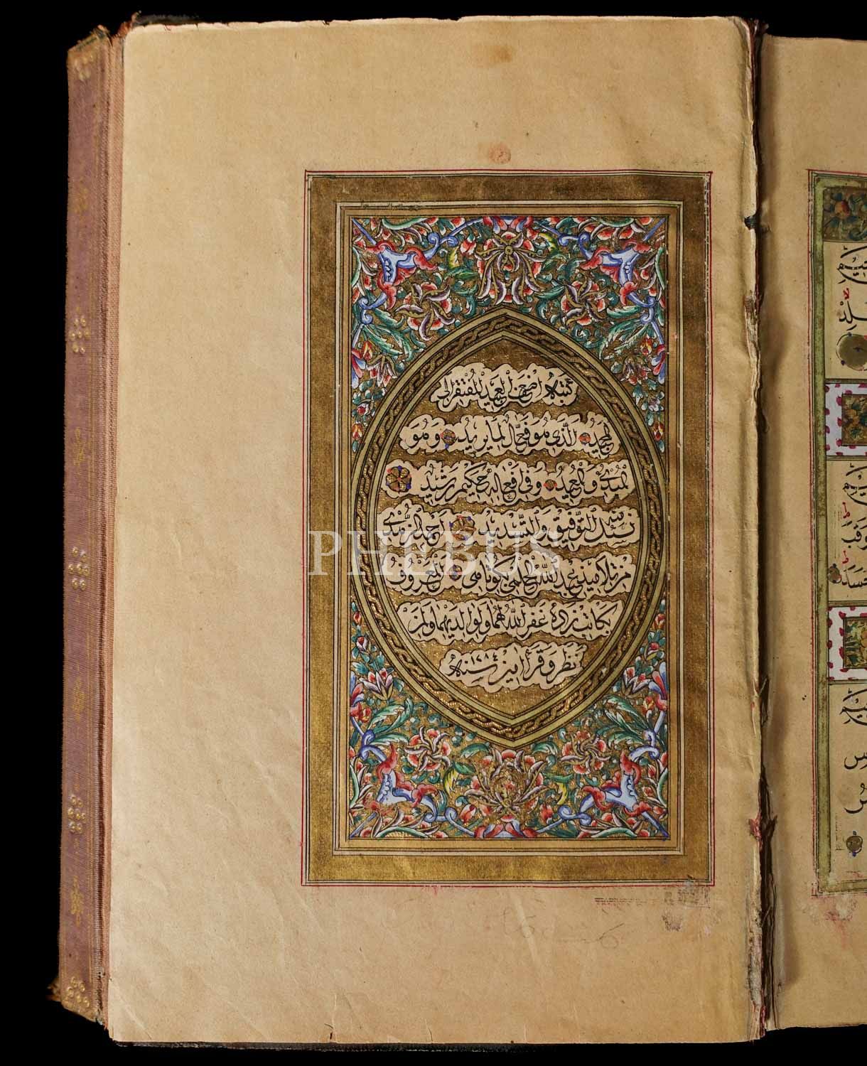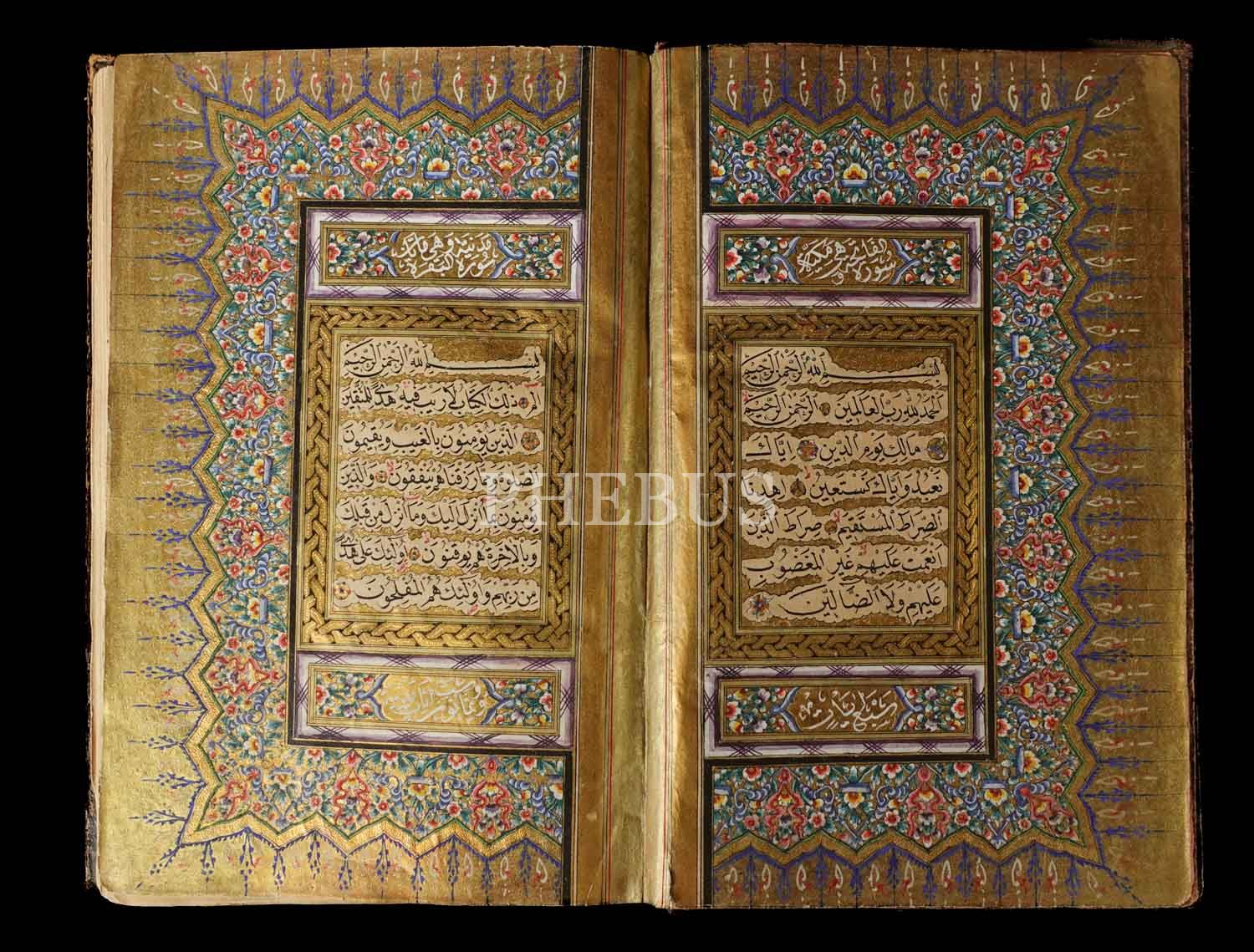 KURAN-I KERİM, Katipzade Kütahyalı Abdullah Hilmi talebesi Ahmed Zühdi Efendi ketebeli, 1284 tarihli, serlevhalı, tüm sayfaları tahrirli altın cetvelli, sure başları altın levhalı, ketebe sayfası tezhipli, tezyinatlı deri dönem cildinde, 20x13 cm...