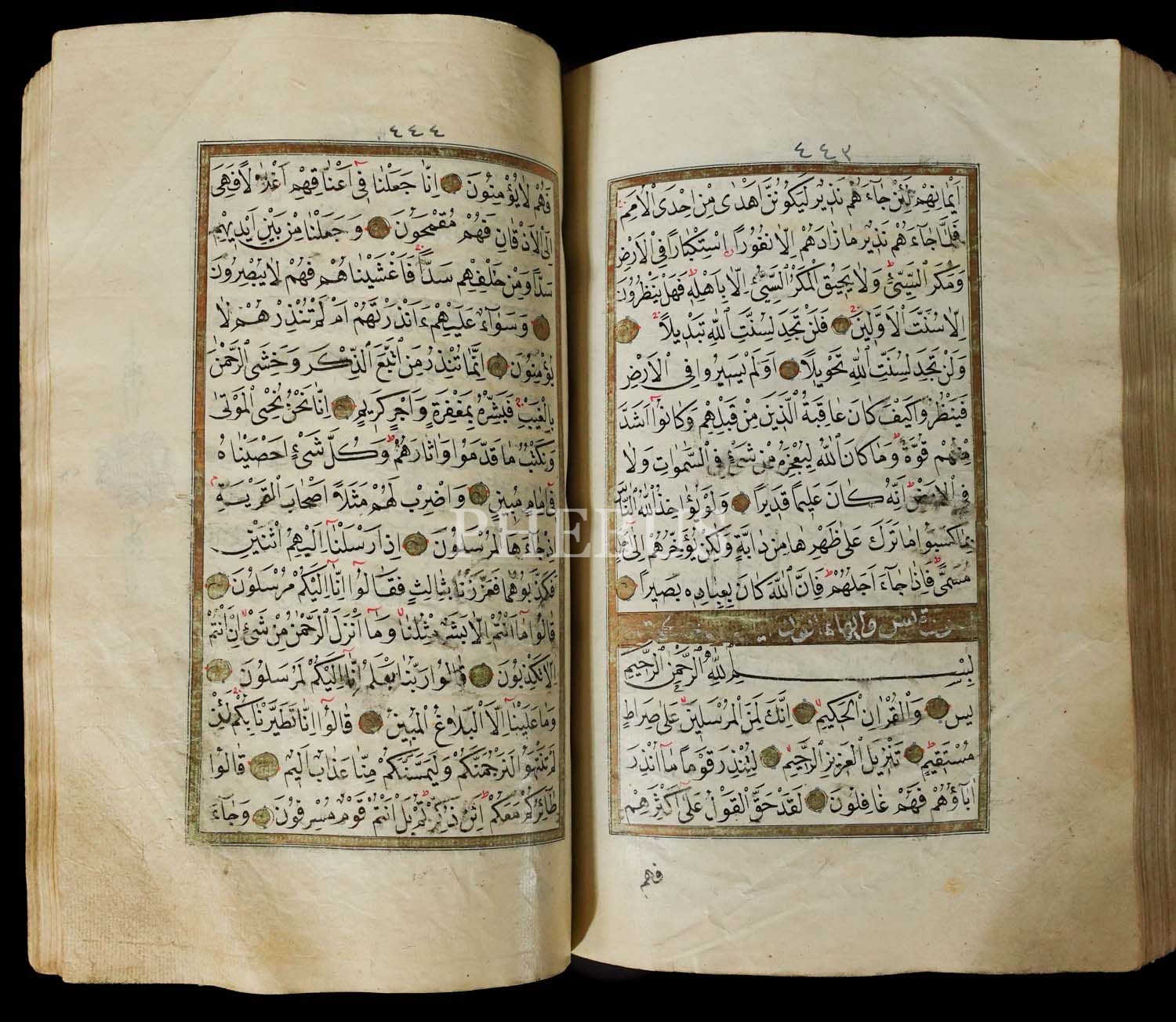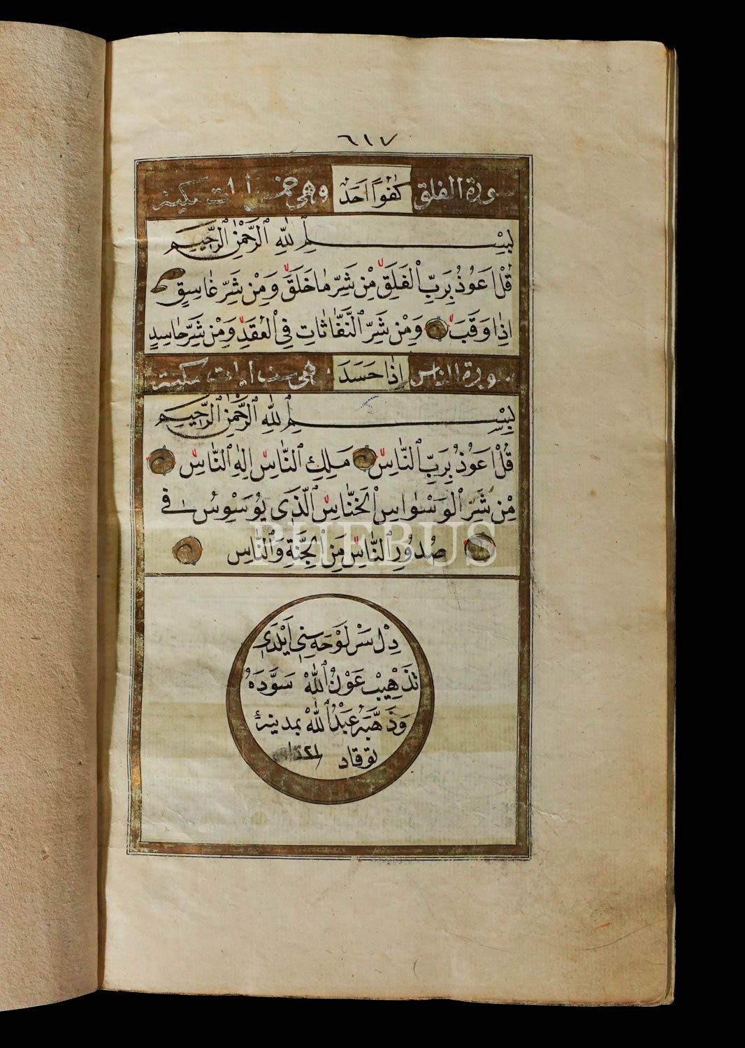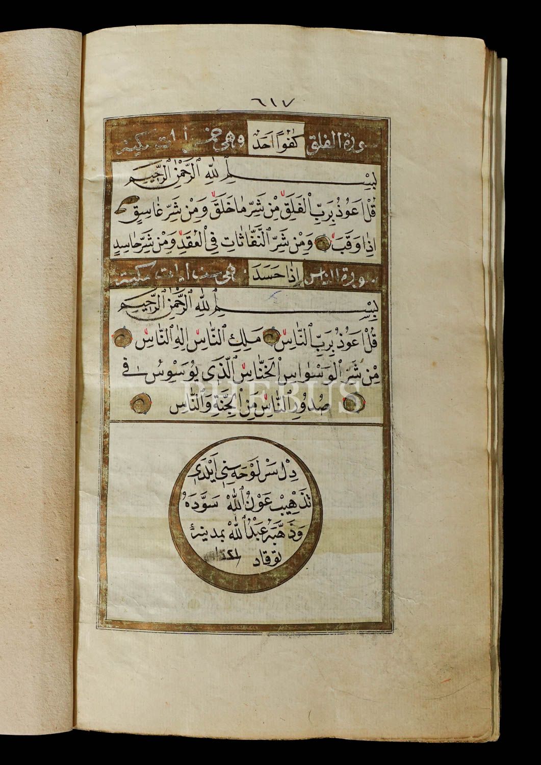 KURAN-I KERİM, Abdullah ketebeli (tezhipleyen ve yazan aynı kişi), 1221´de Tokat´ta yazılmış, serlevhalı, tüm sayfaları tahrirli altın cetvelli, sure başları altın levhalı, deri dönem cildinde, 23x16 cm...