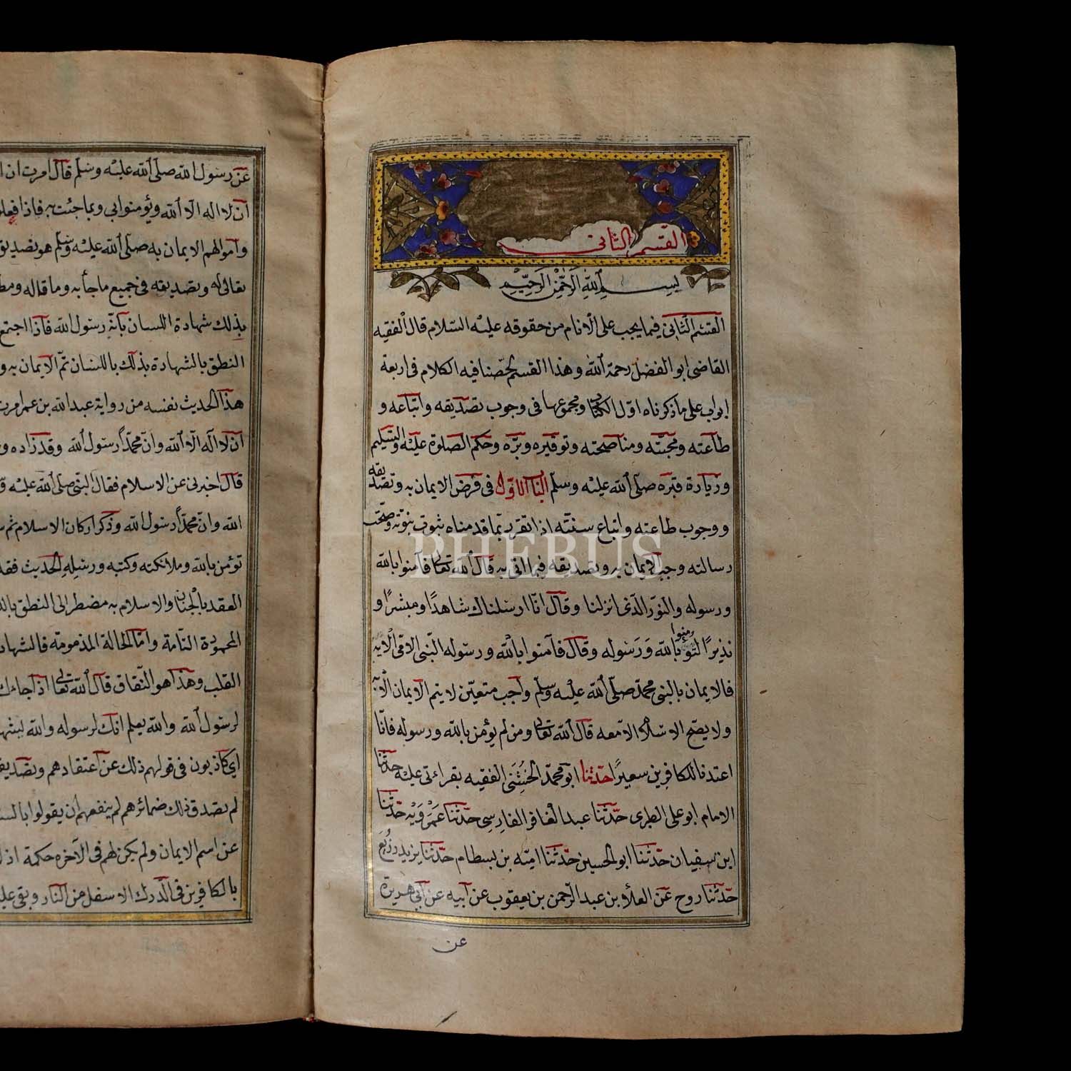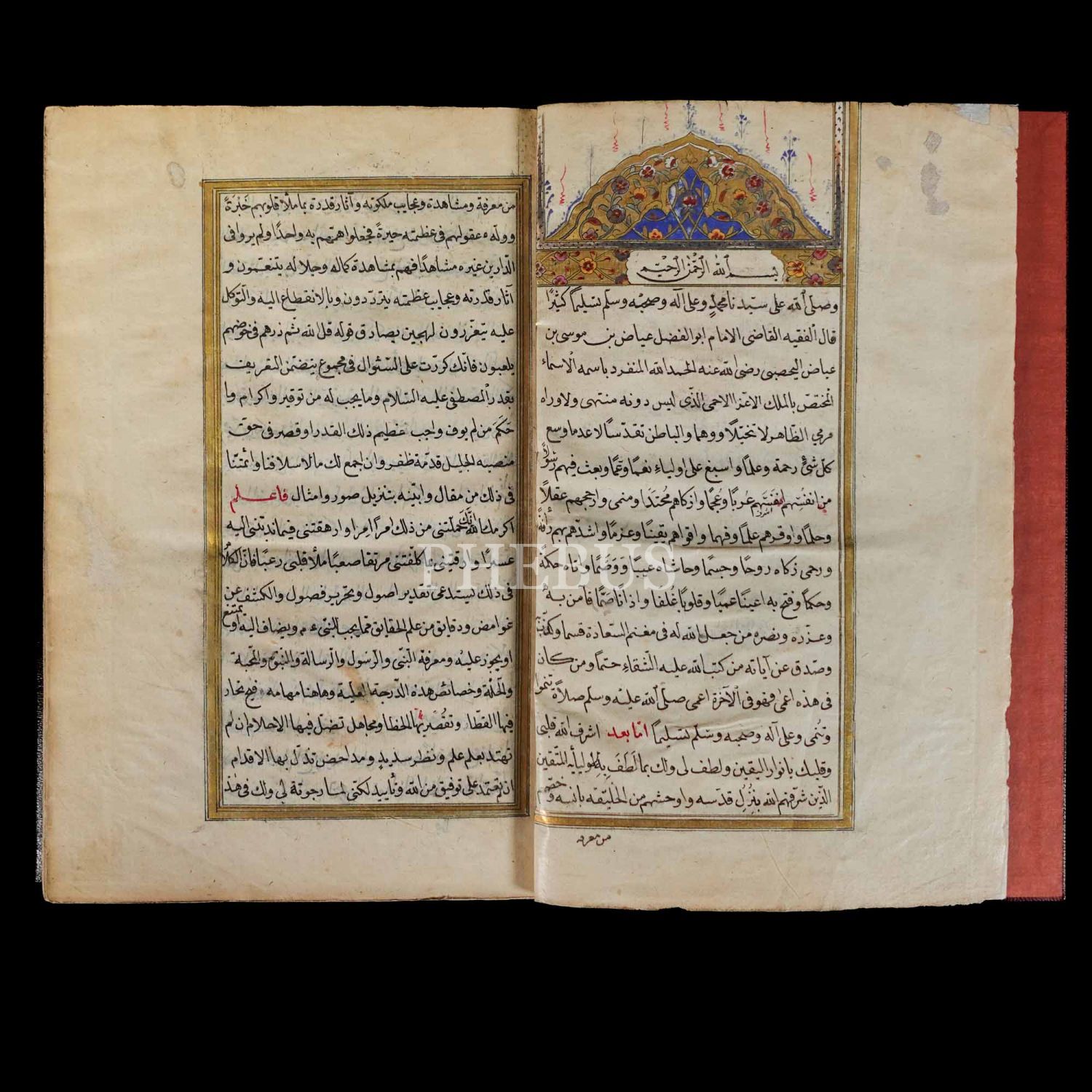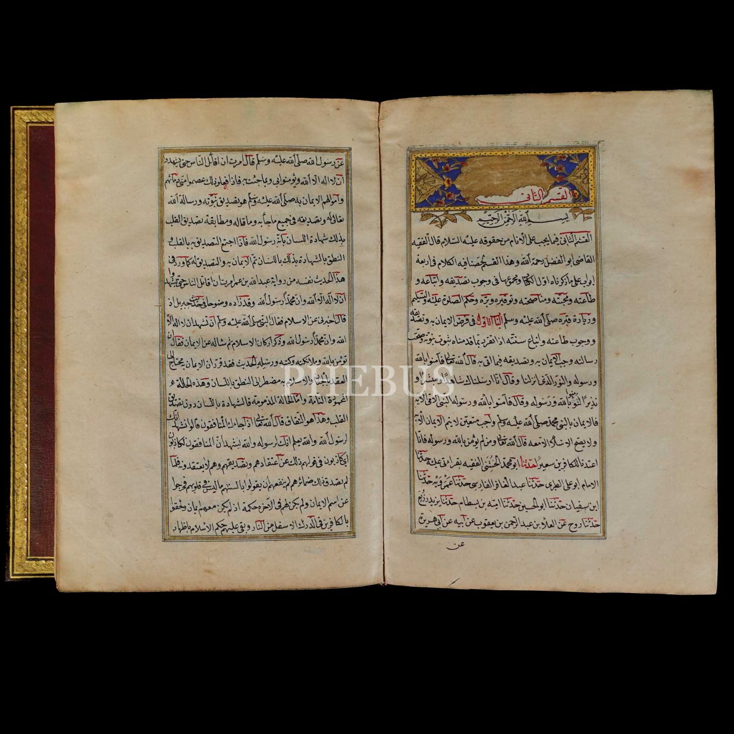 İki cüzden oluşan kitabın iki kısmının başında da serlevha mevcuttur, tüm sayfaları tahrirli altın cetvelli, kısım başları kırmızı mürekkeple yazılıdır. Şemseli ve zencerekli kırmızı deri dönem cildindedir.