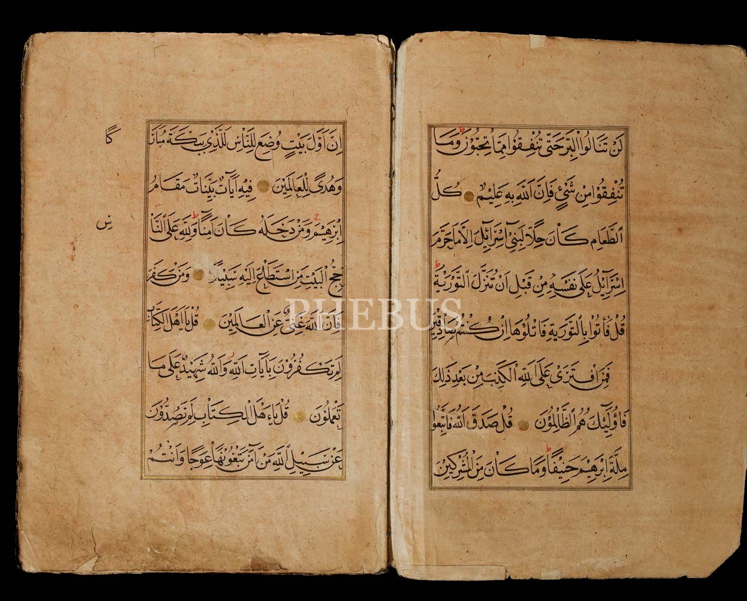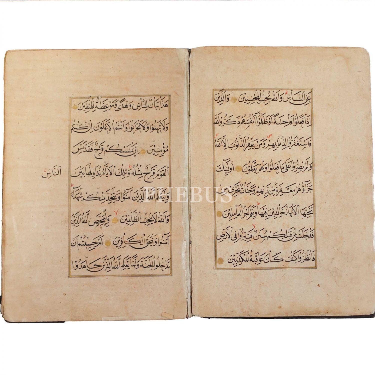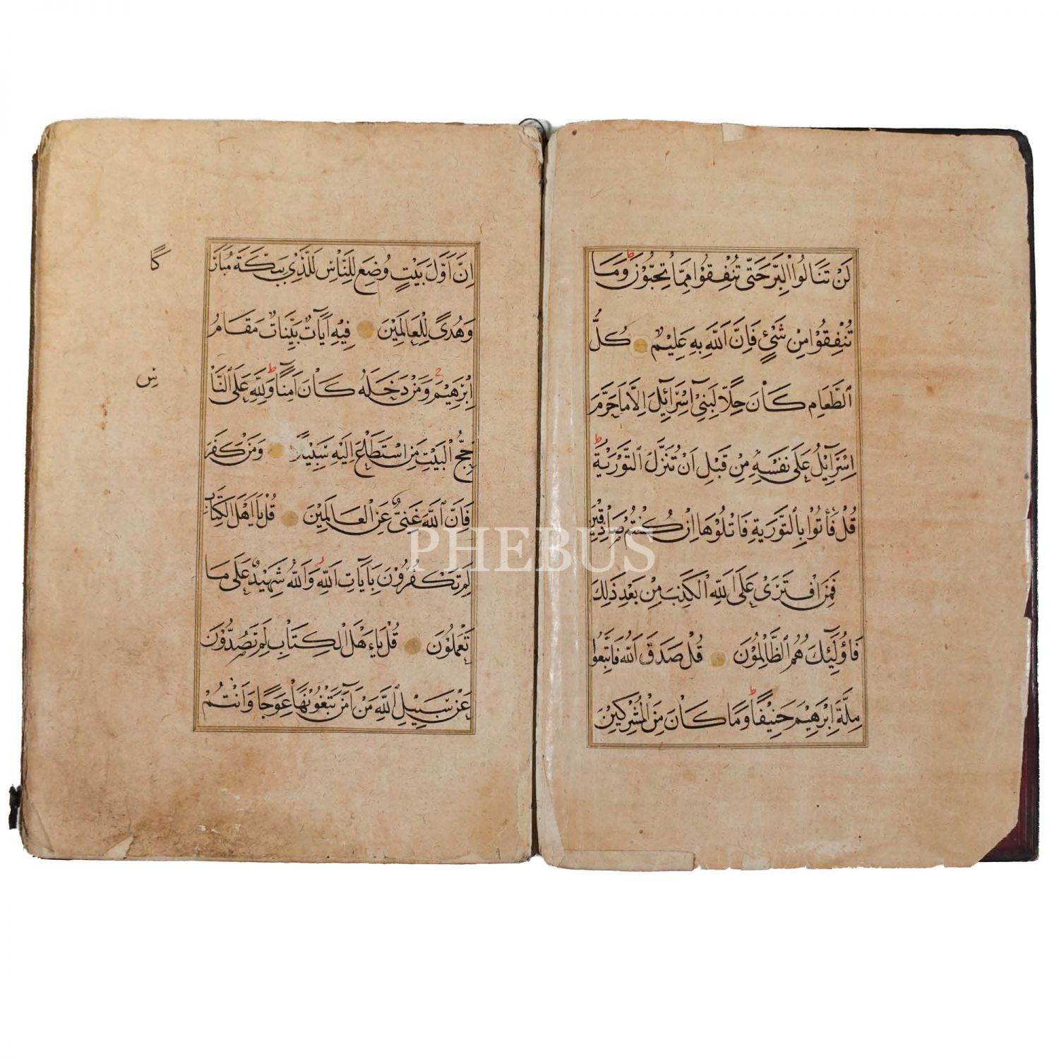 Kuran-ı Kerim Cüzü, tüm sayfaları tahrirli altın cetvelli ve sure başı altın yazılı, Al-i İmran Suresi´nin sonu ile Nisa Suresi´nin baş kısmı yazılıdır, 45 sayfa, 24x17 cm...