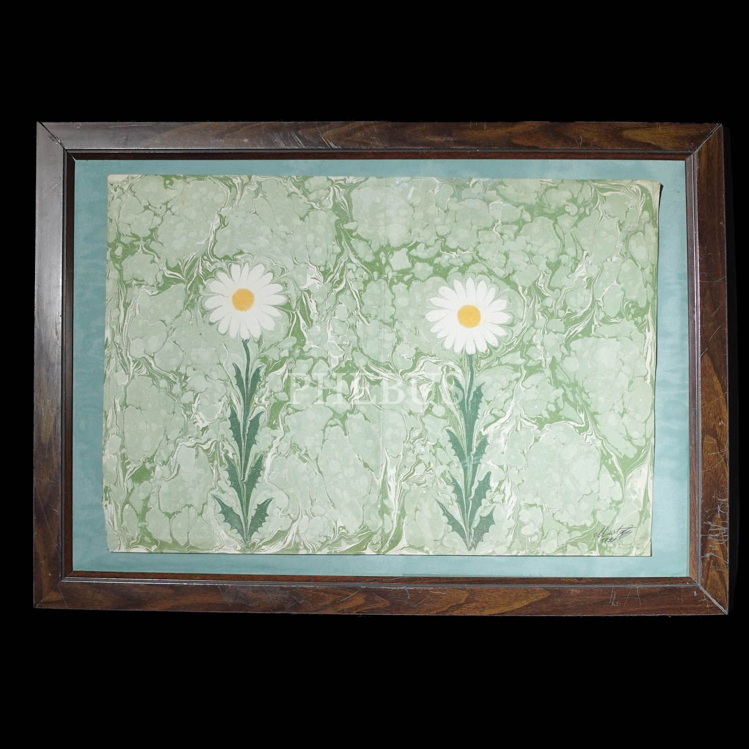 Mustafa Düzgünman imzalı çift papatya ebru, ebru ölçü: 49x33 cm, çerçeve ölçü: 61x44 cm...