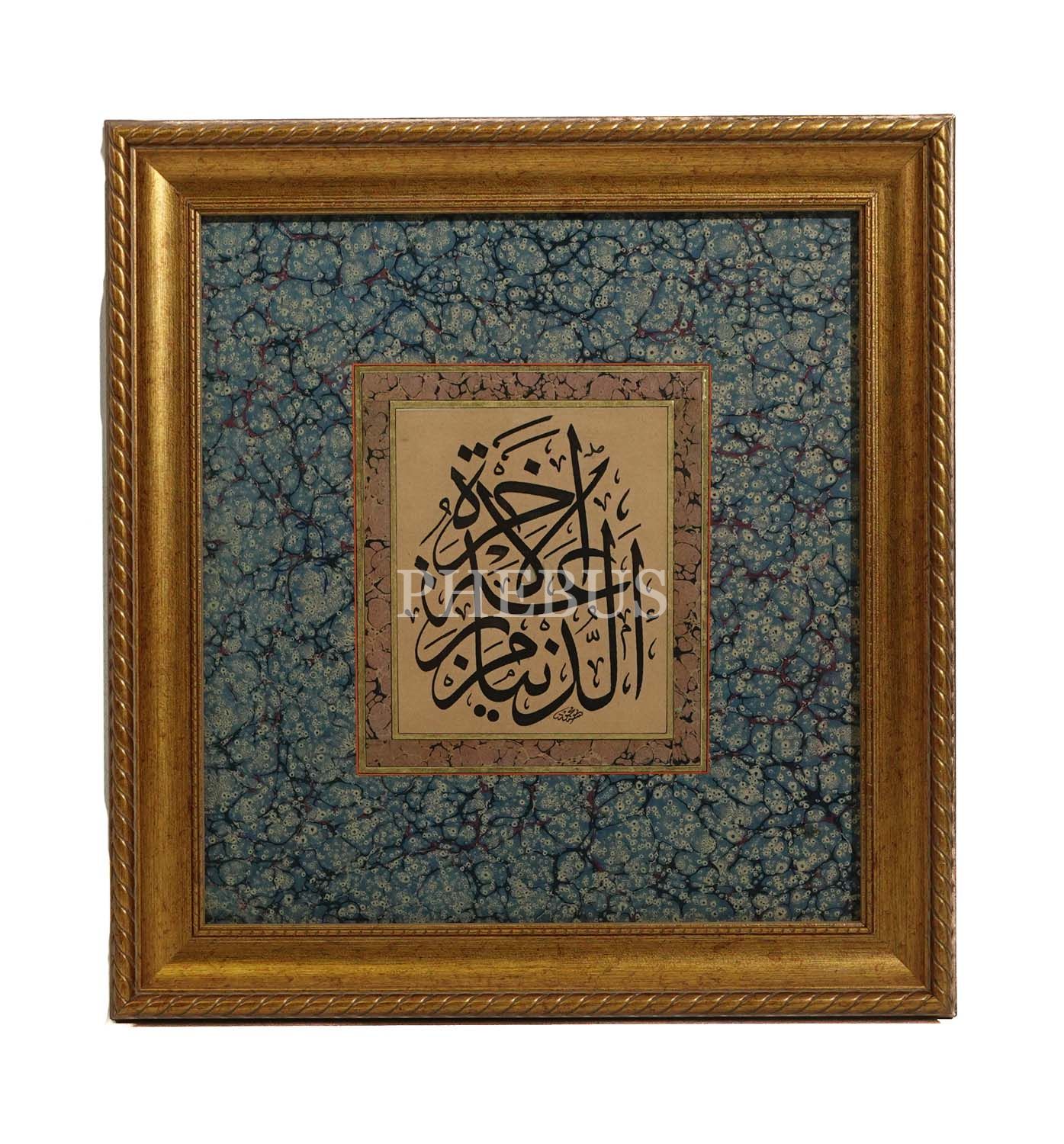 Mahmud Bedreddin Yazır ketebeli sülüs istif yazı, yazı ölçü: 12x10 cm, çerçeve ölçü: 32x30 cm...