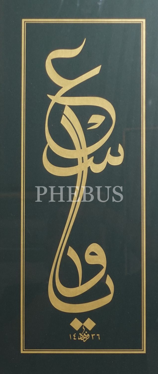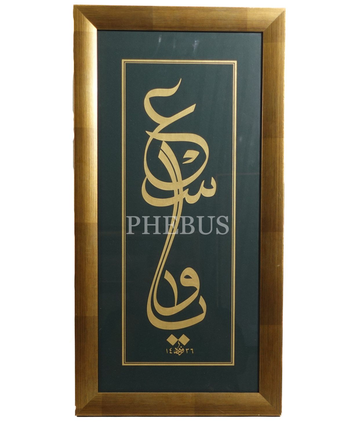 Ferhat Kurlu celi sülüs zerendud hat levha, 1436 tarihli, çerçeve ölçü: 71x36 cm...