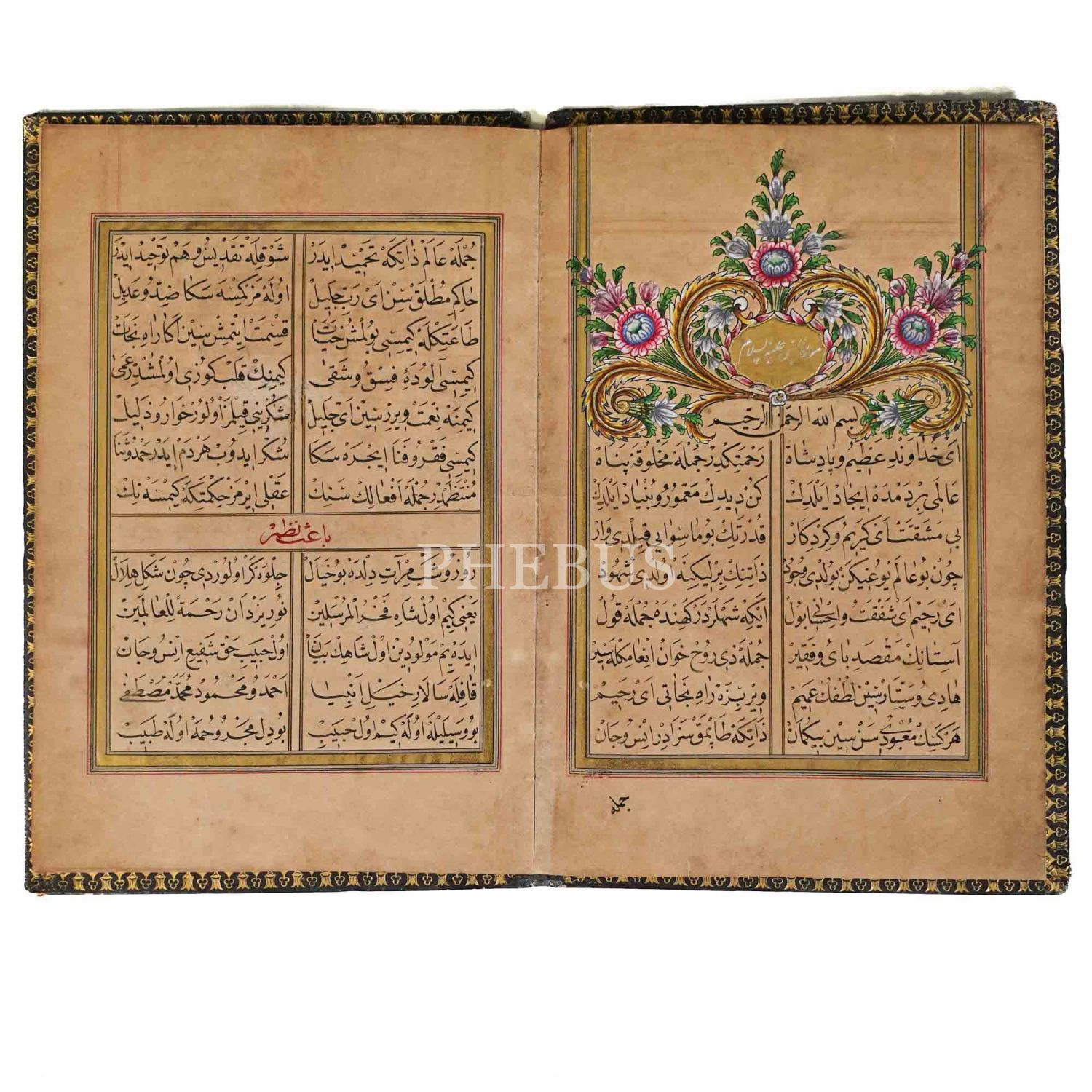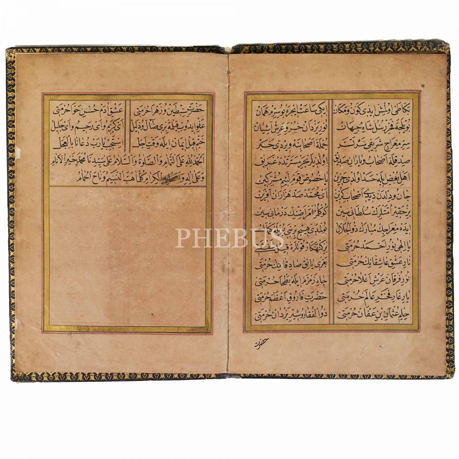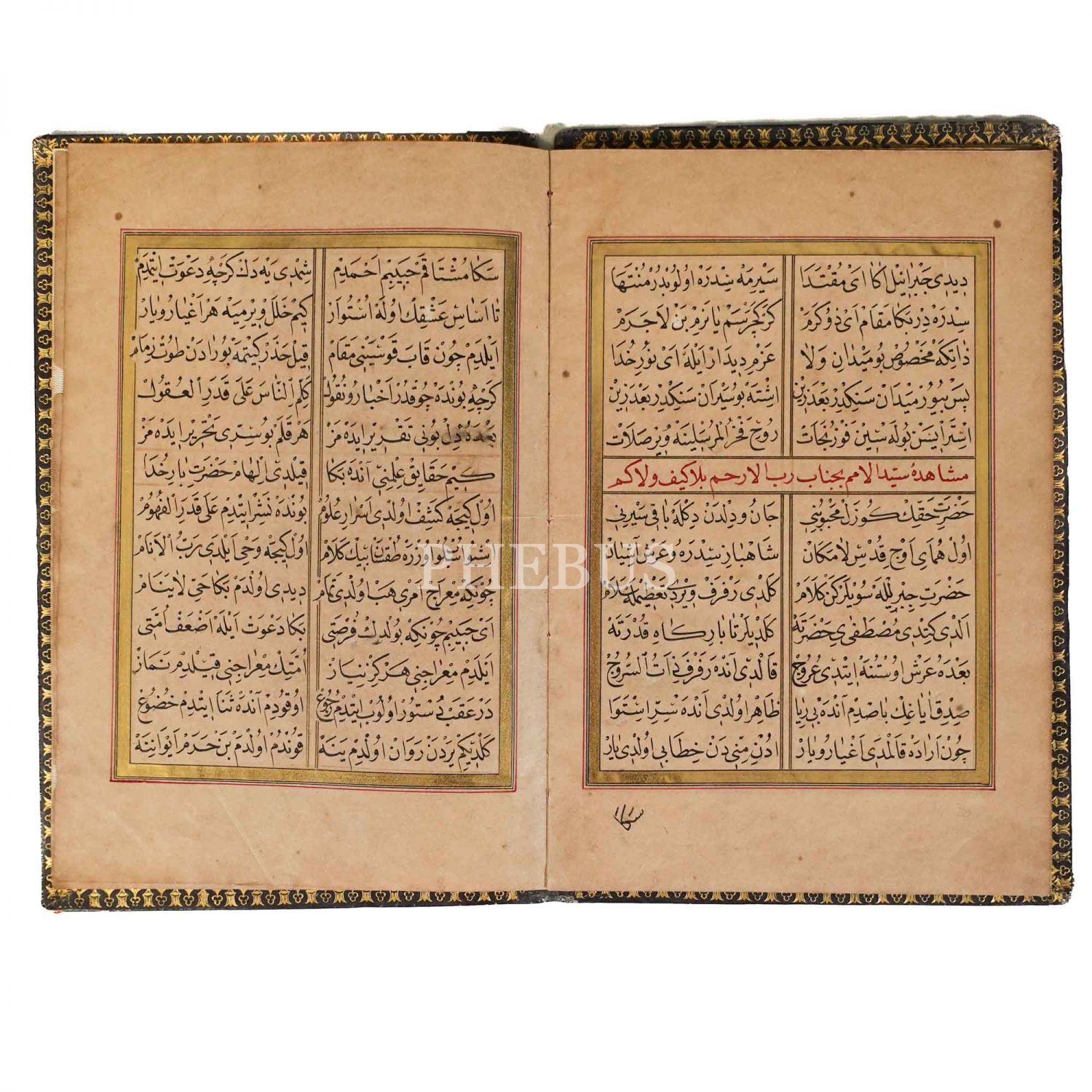 Mevlid-i Şerif, Babıali Buhari-i Şerif hocası Refet Efendi, serlevhalı, tüm sayfaları tahrirli altın cetvelli, klişeli deri dönem cildinde, 20 sayfa, 21x14 cm...