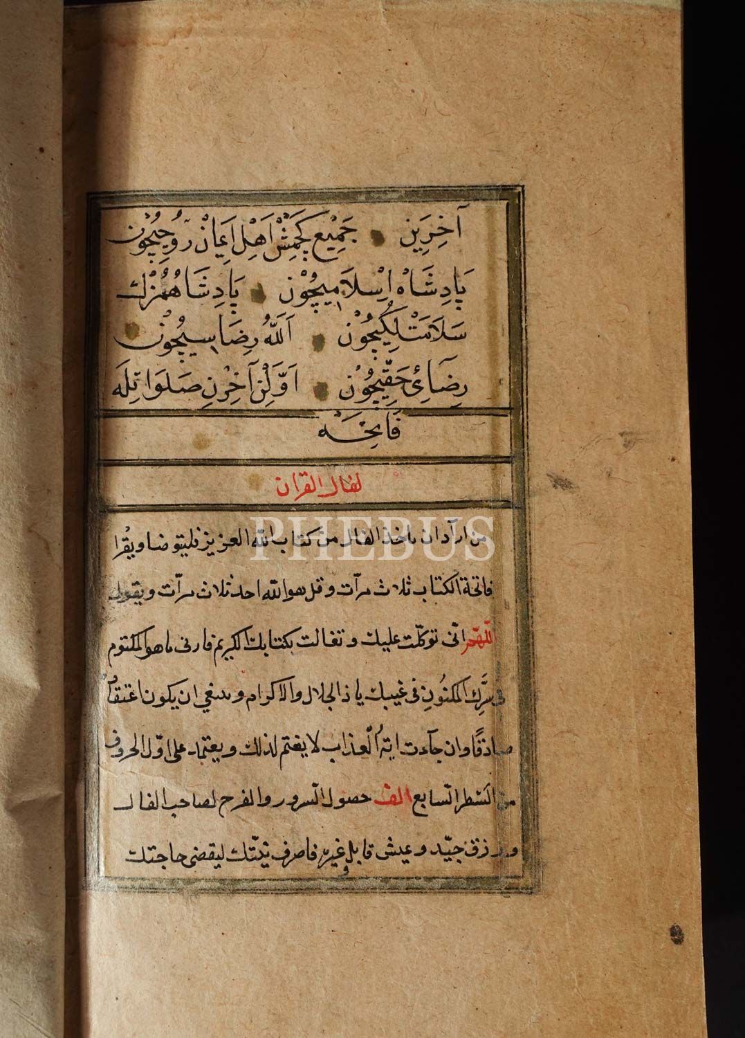 Harekeli iri nesih yazı ile yazılmış, "54 Farz" ve "İmansız Gitmenin Sebepleri" kısımlarının başı kırmızı mürekkeple yazılarak bölüm başı yapılmış, kırmızı mürekkeple ketebe ve tarih atılmış. Serlevhalı, tüm sayfaları tahrirli cetvelli, deri dönem cildinde.