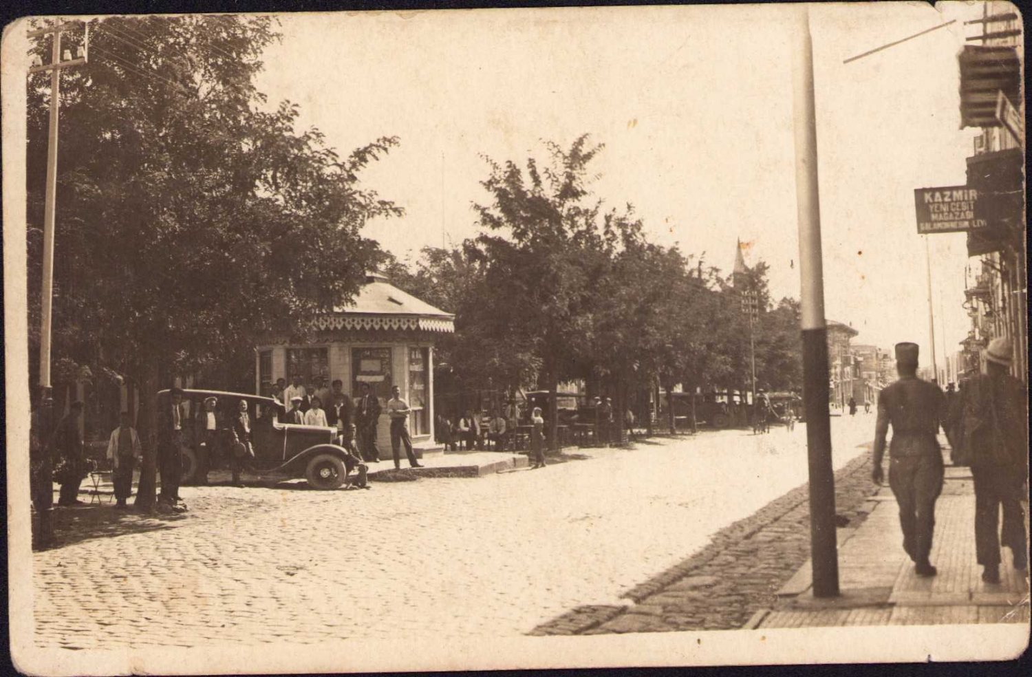 Erken dönem Anadolu'dan görünüm, 'Kazmir Yeni Çeşit Mağazası' tabela detaylı