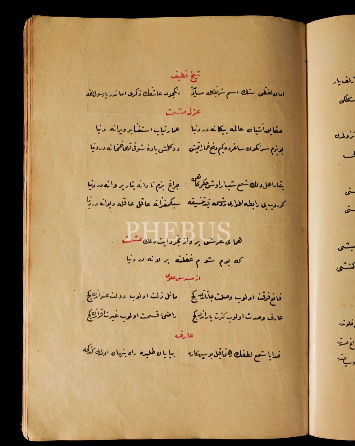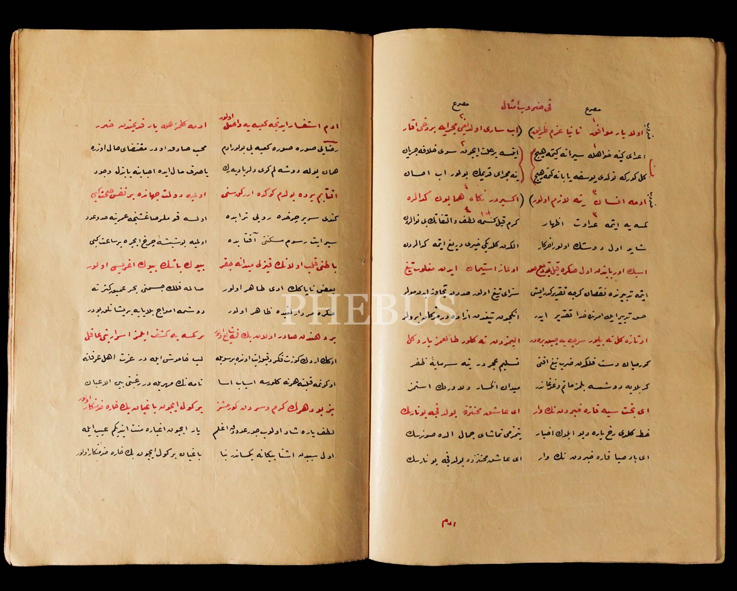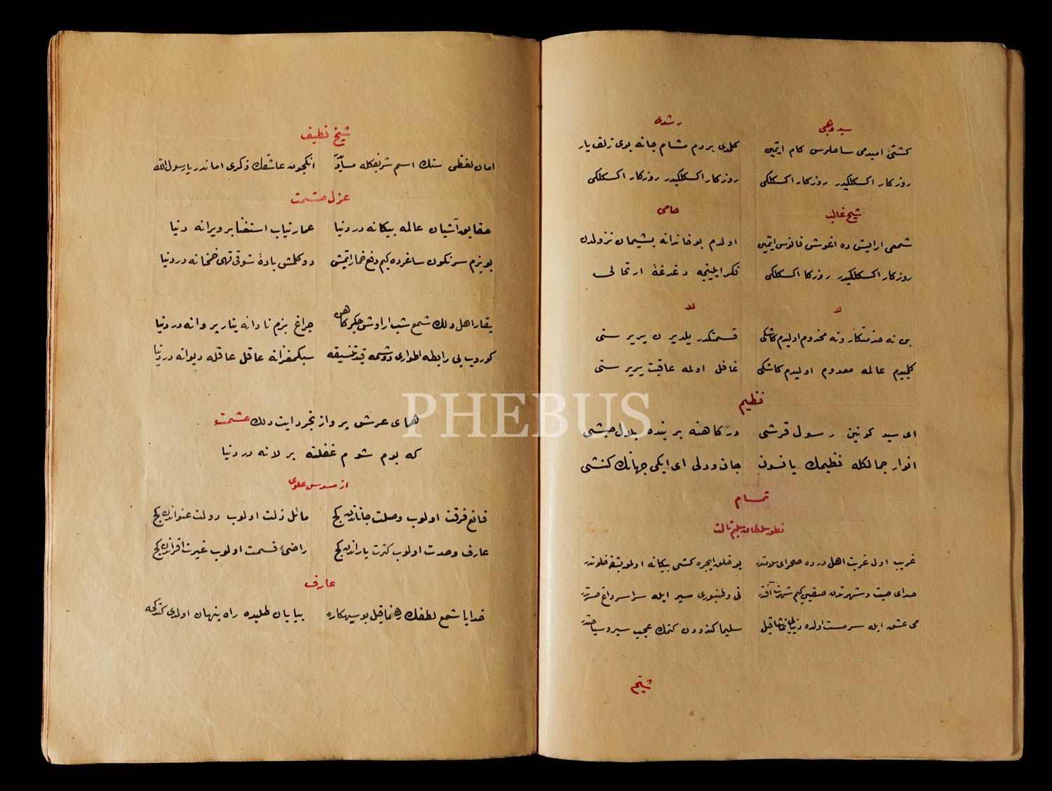 Şiir Mecmuası, kırmızı kadifeli çârkûşe dönem cildi içinde, 1122 tarihli, 186 sayfa, 23x16 cm...