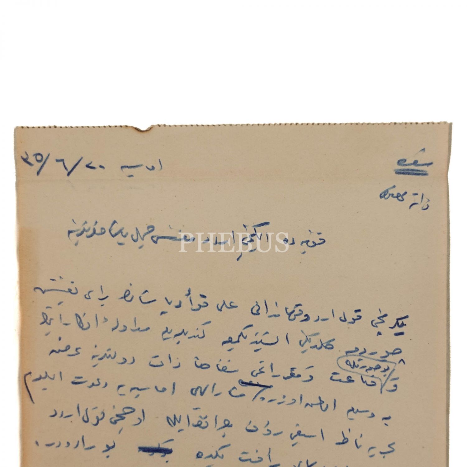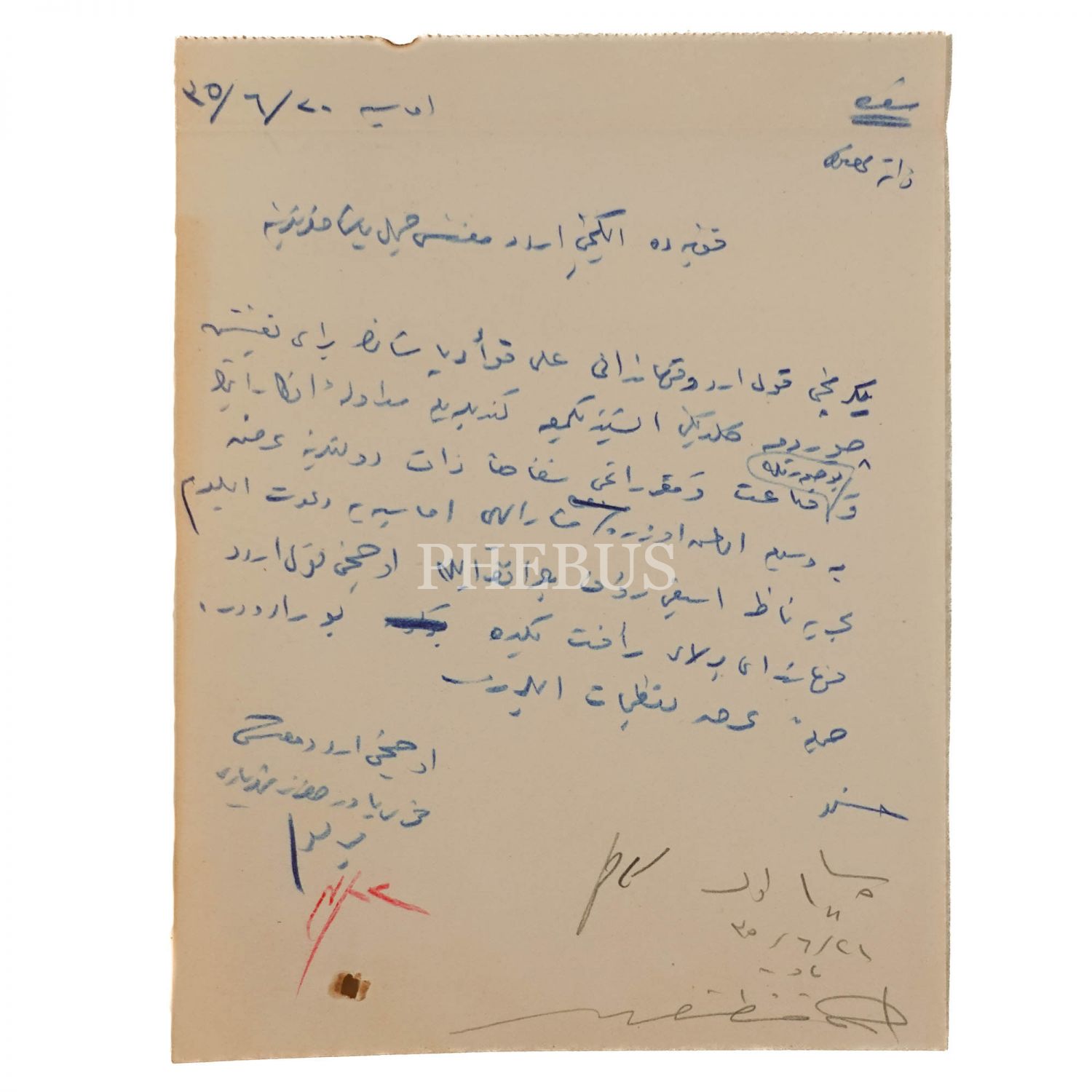 Mustafa Kemal Atatürk´ün, "Üçüncü Ordu Müfettişi ve Padişahın Fahri Yaveri" sıfatıyla imzaladığı, Hüsrev (Gerede) tarafından İkinci Ordu Müfettişi Cemil Paşa´ya hitaben 20 Mayıs 1919 tarihinde Amasya´da kaleme alınan, teftiş için Çorum´a gelen İkinci Kolordu Kumandanı Ali Fuad (Cebesoy) Paşa´nın fikir alışverişi için Rauf Orbay ve Refet Bele´nin de bulunduğu Amasya´ya davet edildiğini bildiren el yazısı mektup, 14x18 cm...
