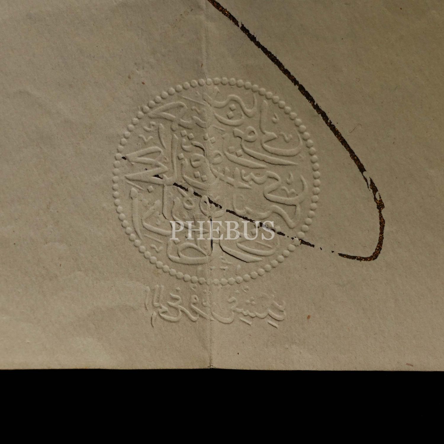Sultan II. Abdülhamid yaldız baskı tuğralı berat, Göbelezzade Mahmud Sadık Efendi´ye dördüncü derece Osmânî nişanı verildiğine dair, 1323 tarihli, 54x26 cm...