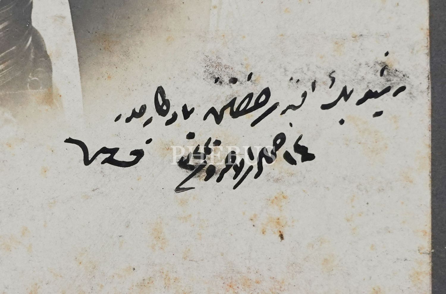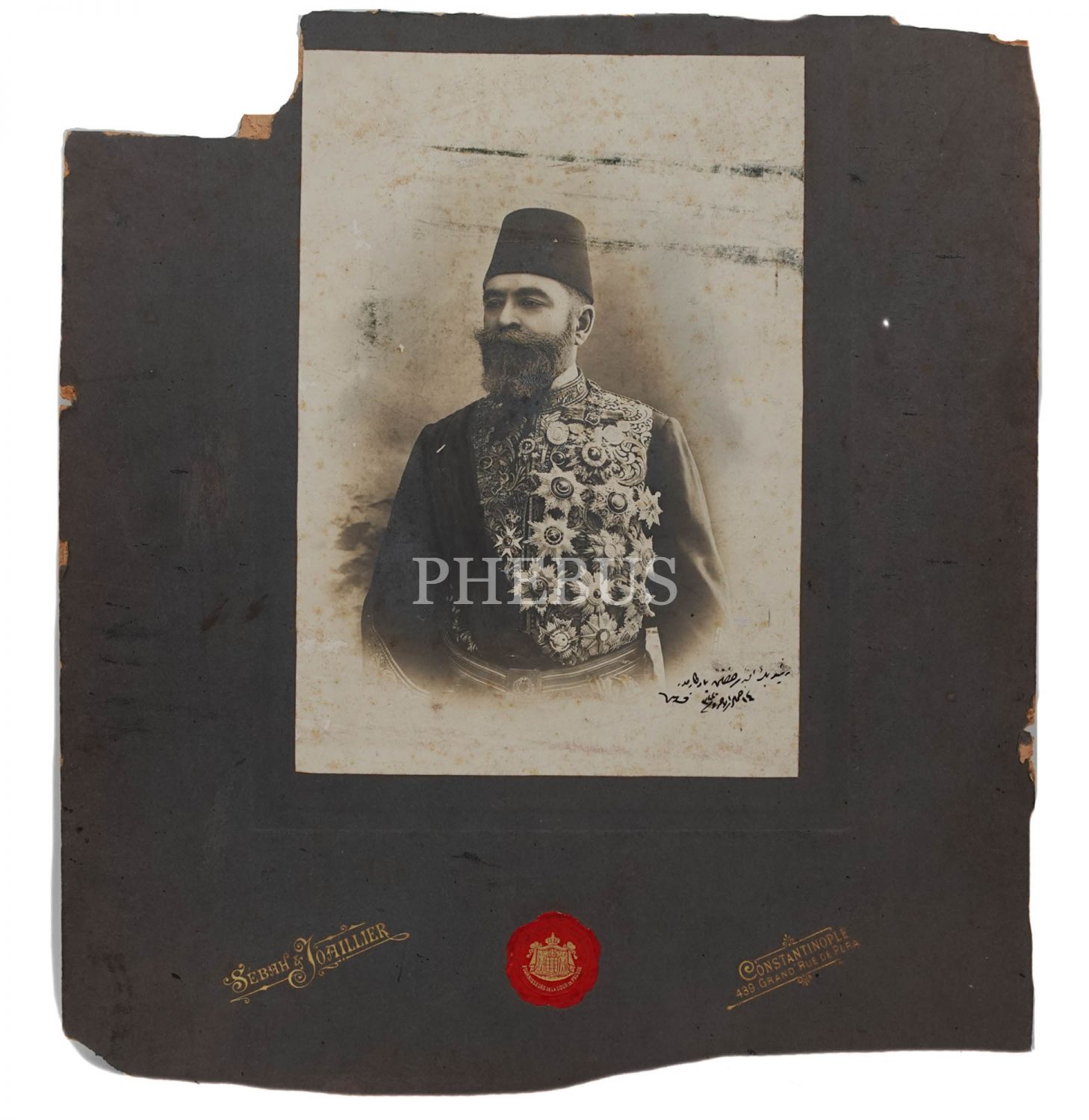 "Reşid Bey Efendi Hazretlerine yadigarımdır. 1320 (1902)" ithafıyla imzalanan fotoğraf, Mustafa Reşid Paşa terekesinden çıkmıştır.