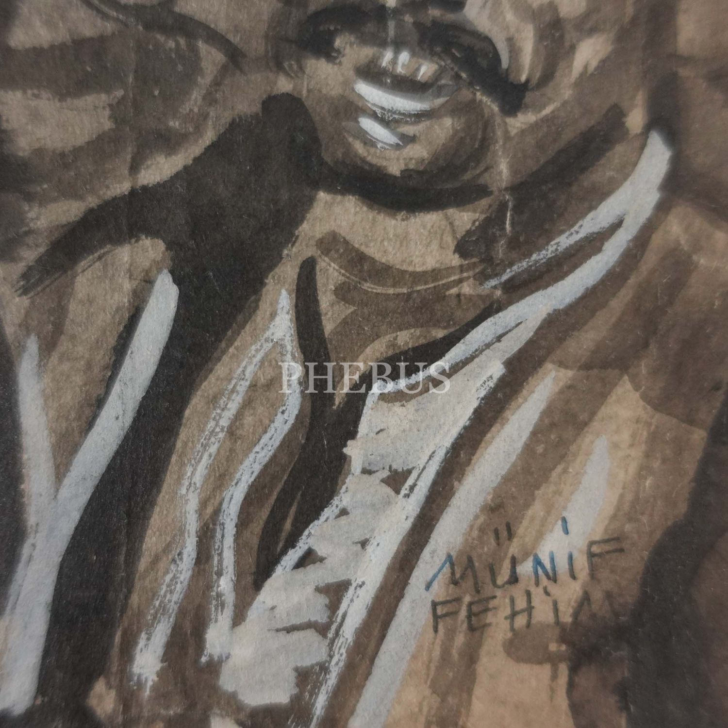 Münif Fehim´den ıslak imzalı, Vaka-i Vakvakiye konulu orijinal çizim, kâğıt üzerine karışık teknik, 36x27 cm...