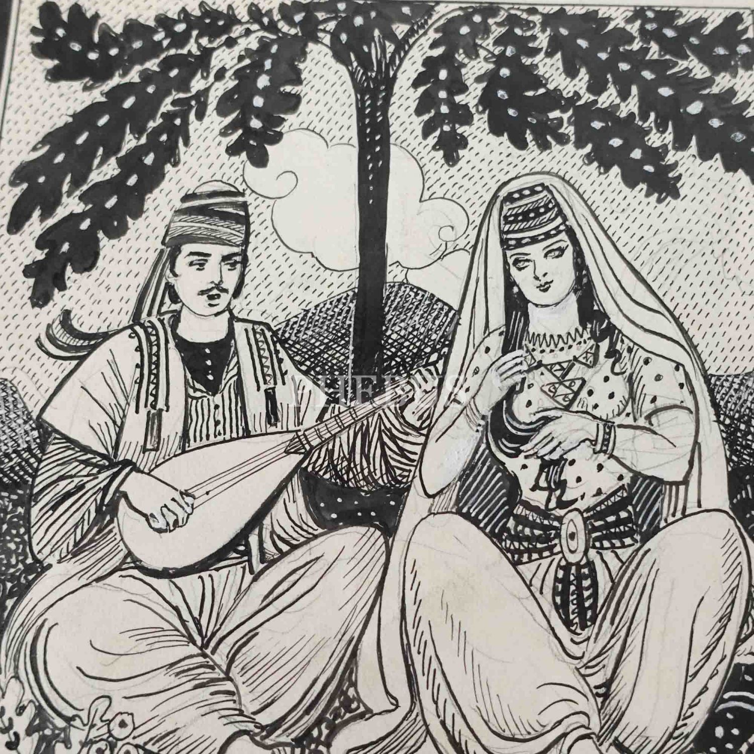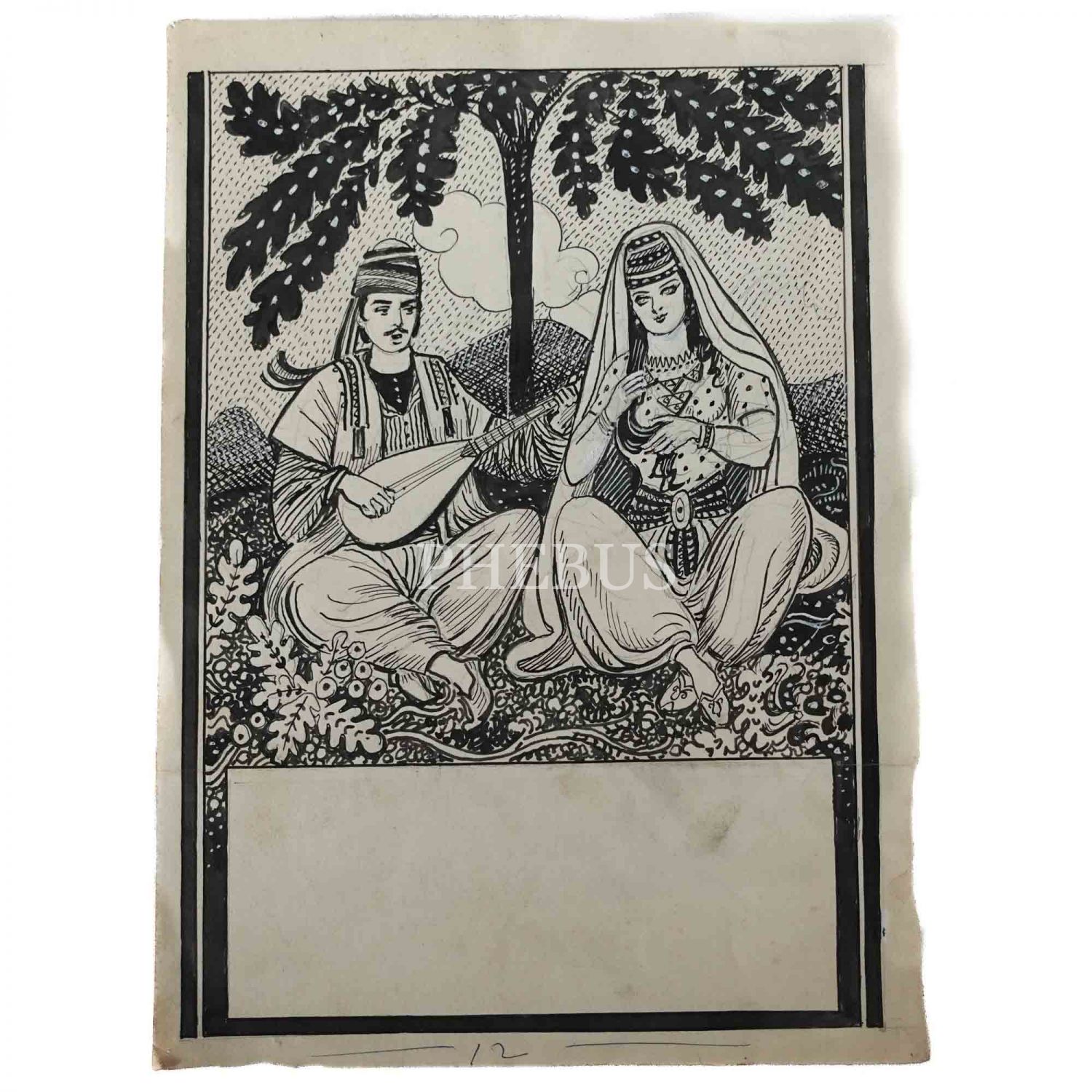 Münif Fehim´den Ferhat ile Şirin konulu orijinal çizim, kâğıt üzerine karışık teknik, 25x35 cm...