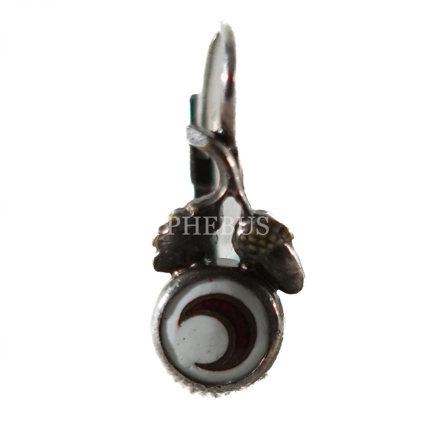 Hilal-i Ahmer Cemiyeti logolu, meşe palamudu ve yaprağı detaylı gümüş küpe, 1 cm...