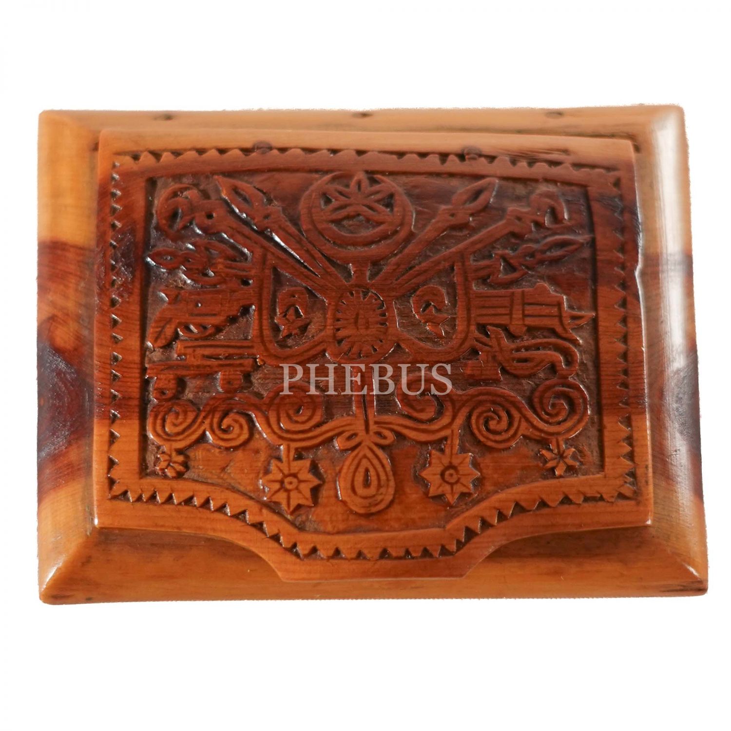 El oyması Osmanlı devlet arması görselli ahşap kutu, 7x6x2 cm...