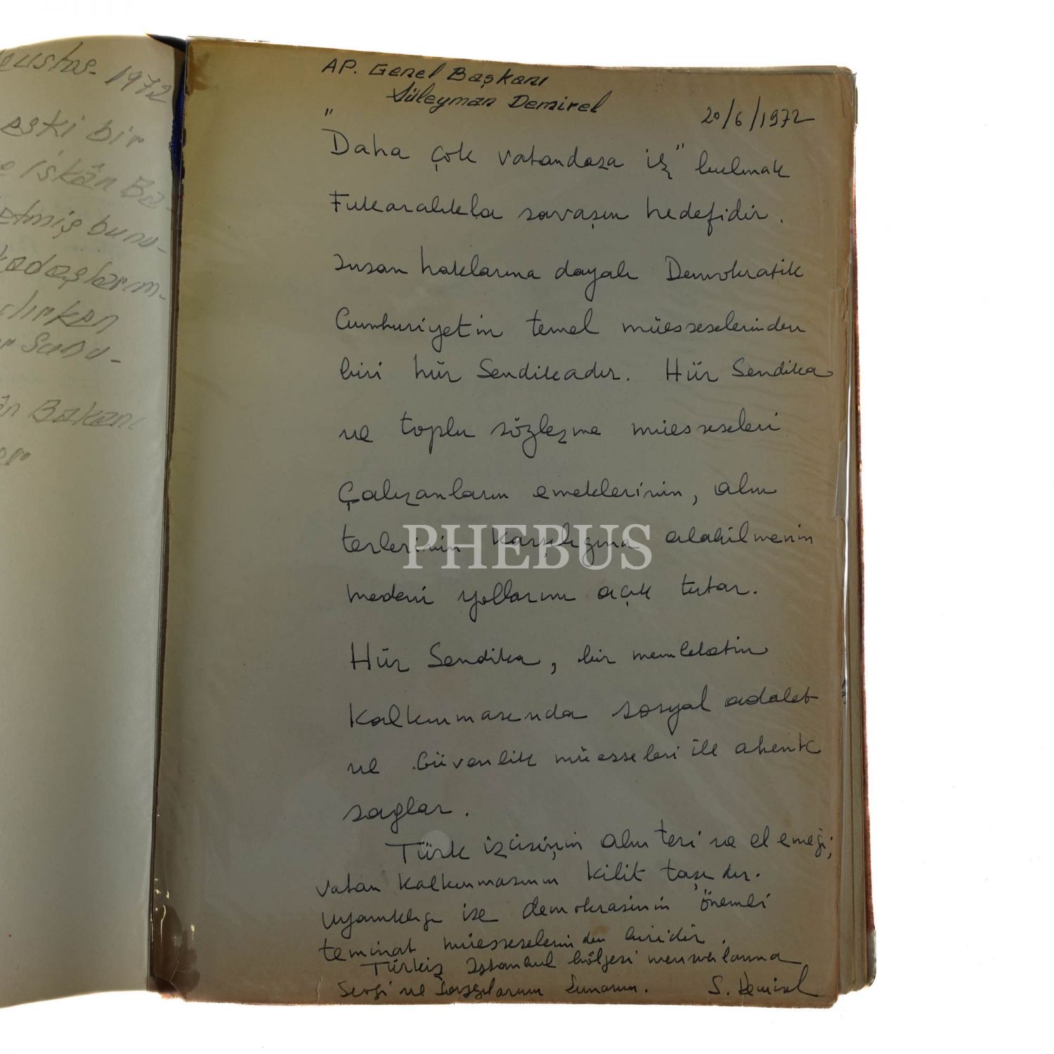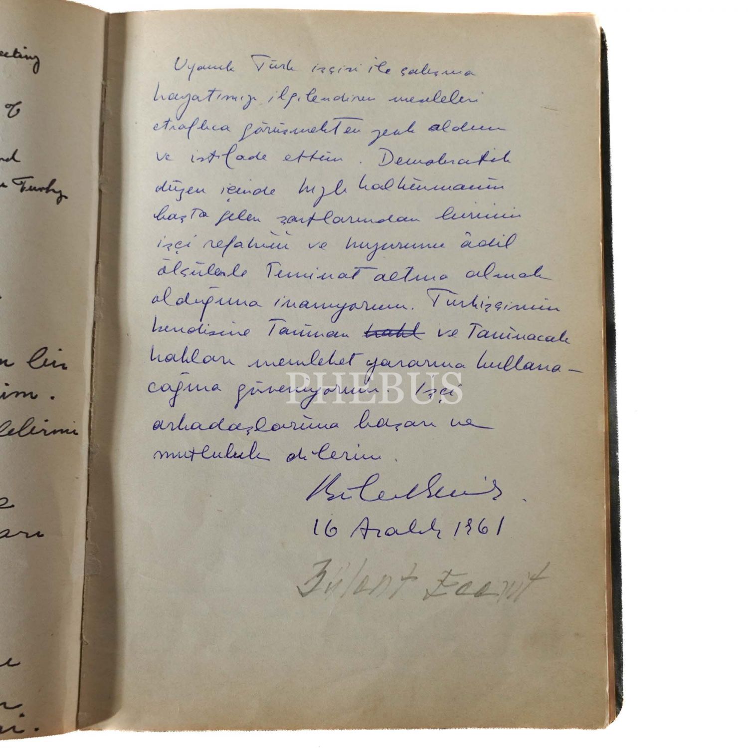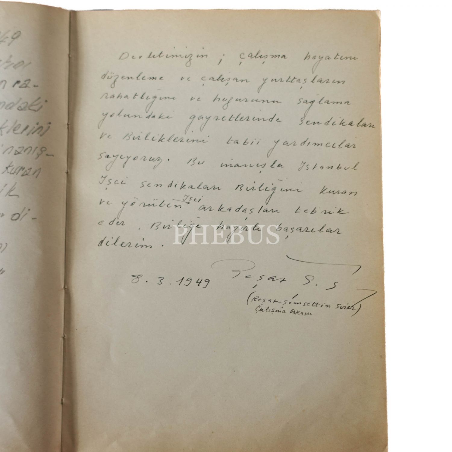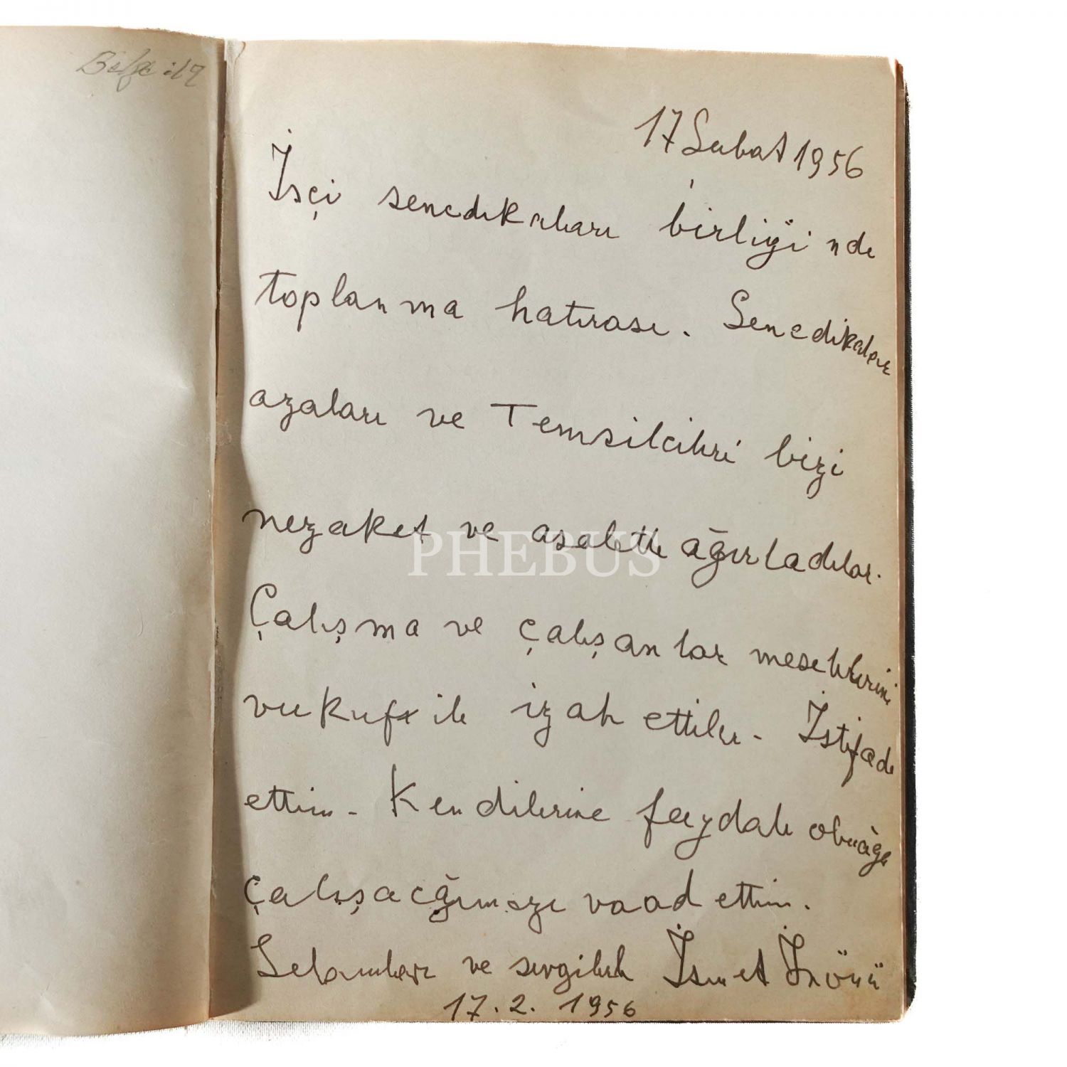 1943-1962 yılları arasında doldurulan "İstanbul İşçi Sendikaları Birliği - Kuruluş Tarihi 24.3.948" başlıklı defterden öne çıkan isimler: İsmet İnönü (17 Şubat 1956 ve 1 Şubat 1962 tarihli iki yazısı mevcuttur), Bülent Ecevit, Çalışma Bakanı Samet Ağaoğlu, İstanbul Valisi ve Belediye Başkanı Fahrettin Kerim Gökay, Tekel Bakanı Mehmet Emin Erişirgil, Çalışma Bakanı Tahsin Bekir Balta, Çalışma Bakanı Reşat Şemsettin Sirer, Mübeccel Belik Kıray... 1967-1973 yılları arasında doldurulan "Türk-İş I. Bölge Temsilciliği Onur Defteri" başlıklı defterden öne çıkan isimler: AP Genel Başkanı Süleyman Demirel, CHP Genel Sekreteri ve Zonguldak Milletvekili Bülent Ecevit, Çalışma Bakanı Ali Naili Erdem, İçişleri Bakanı Haldun Menteşeoğlu, Başbakan Ferit Melen, İmar ve İskan Bakanı Hayrettin Turgut Toker, Başbakan Naim Talu... *İlk defterin cildinde yıpranmalar mevcuttur.
