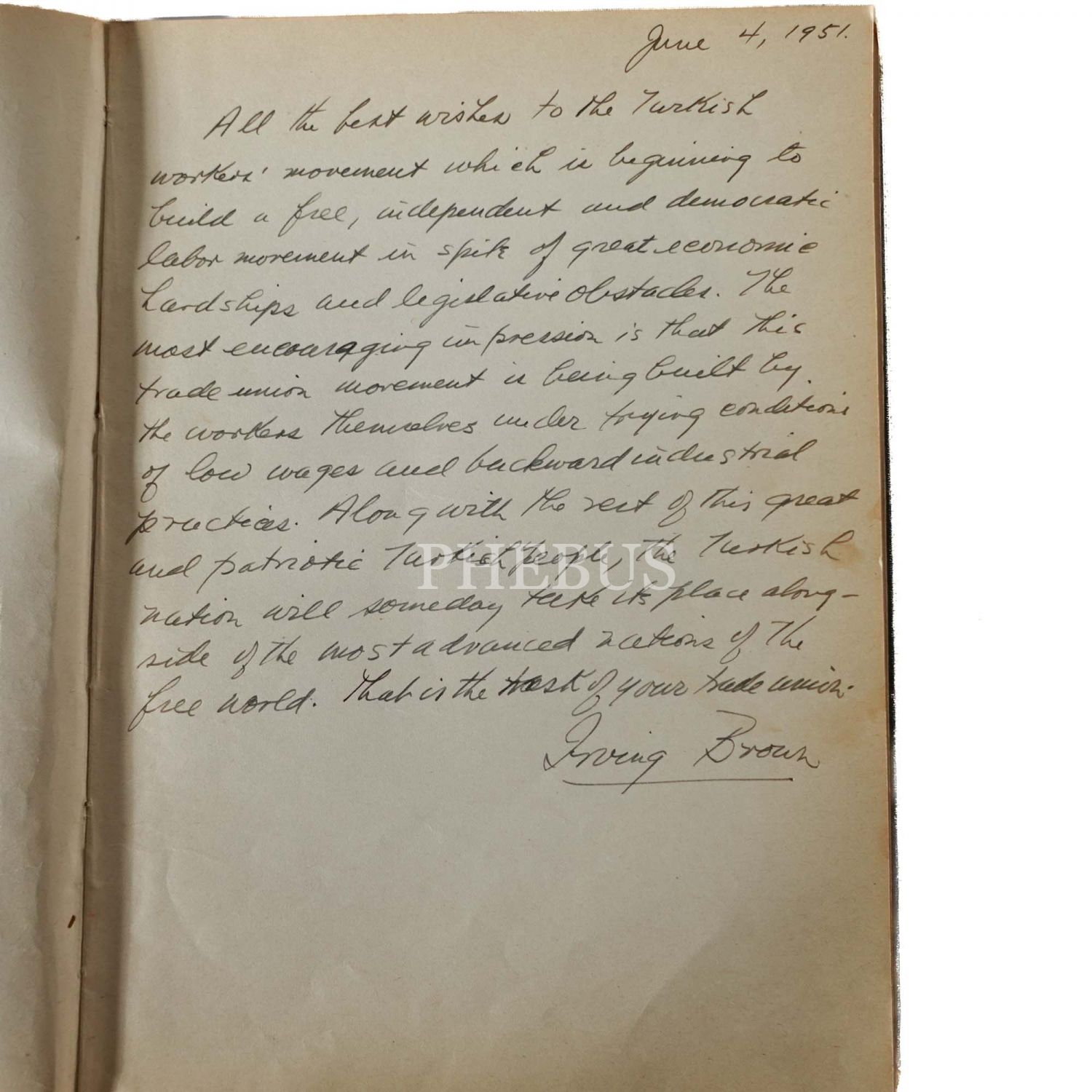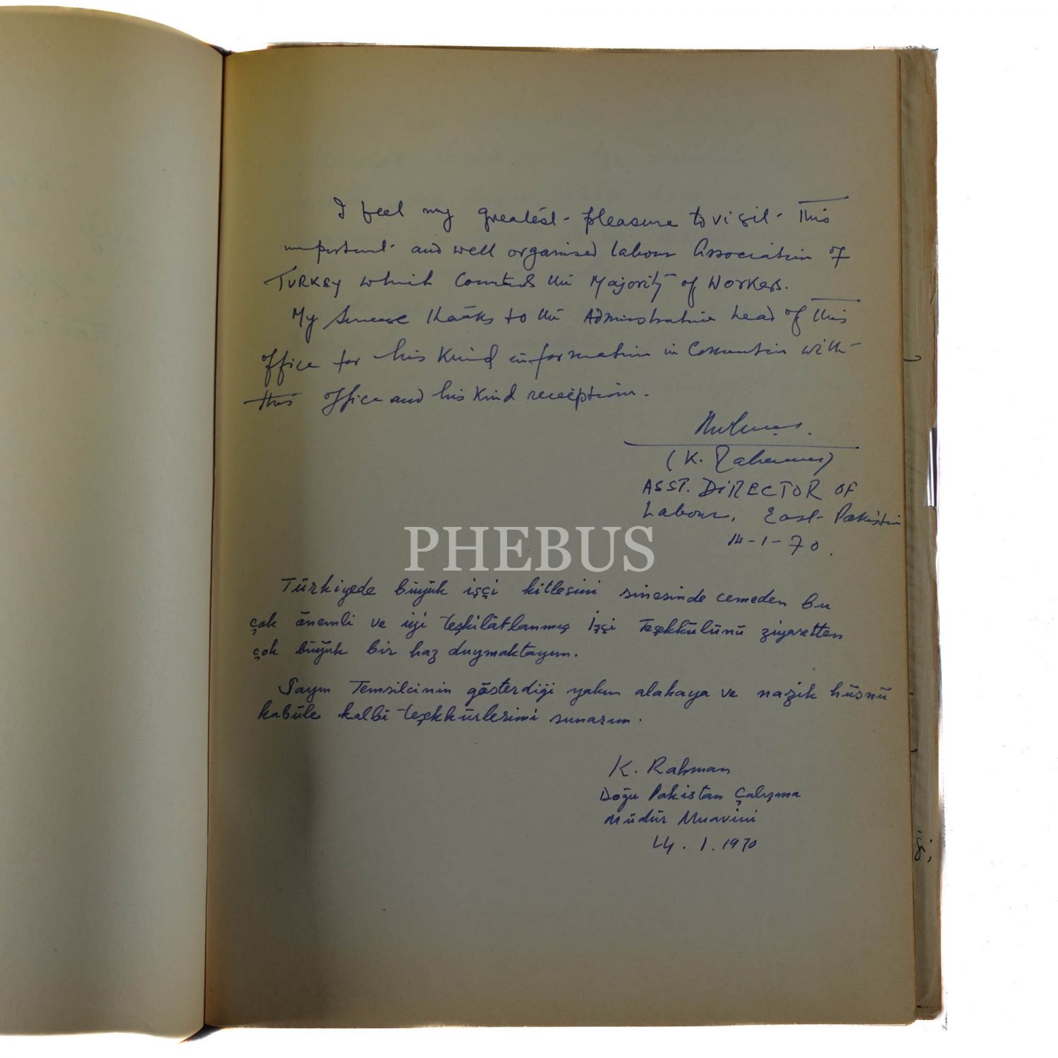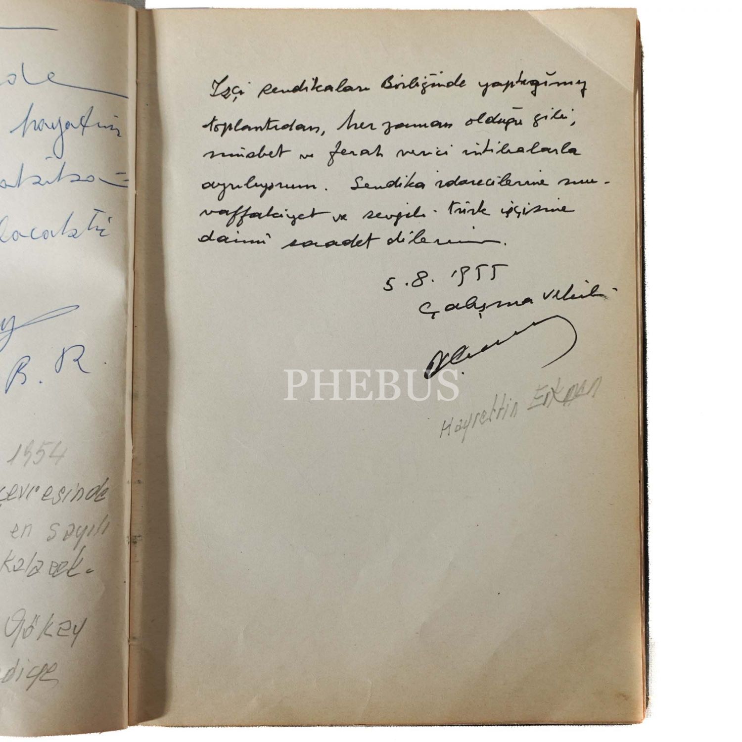 Dönemin başbakanları, bakanları, milletvekilleri, üst düzey bürokratları, yerli ve yabancı sendika başkanları ve temsilcileri tarafından kaleme alınan ziyaret yazılarını içeren, "İstanbul İşçi Sendikaları Birliği - Kuruluş Tarihi 24.3.948" ve "Türk-İş I. Bölge Temsilciliği Onur Defteri" başlıklı iki adet onur defteri, 18x26 cm - 20x29 cm...
