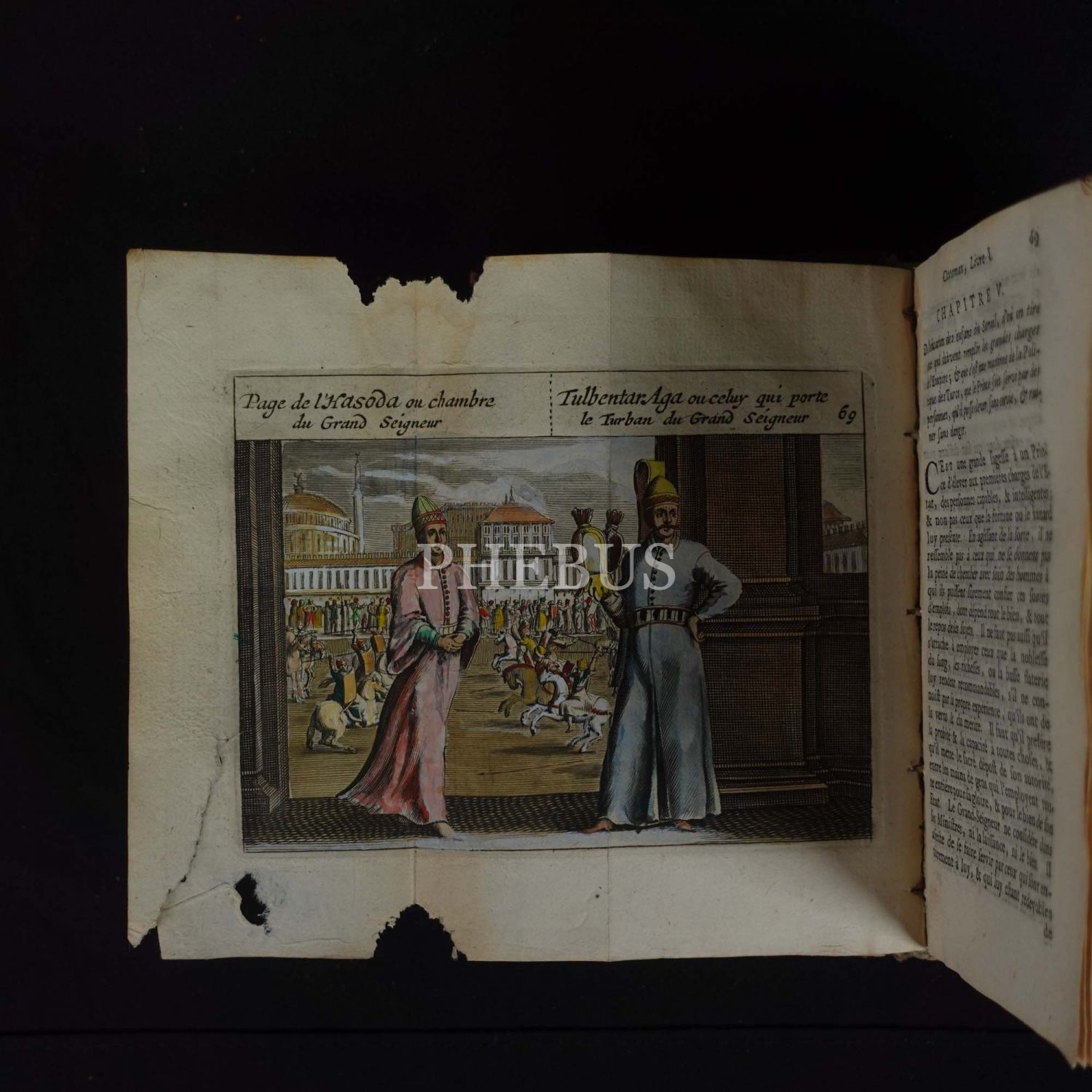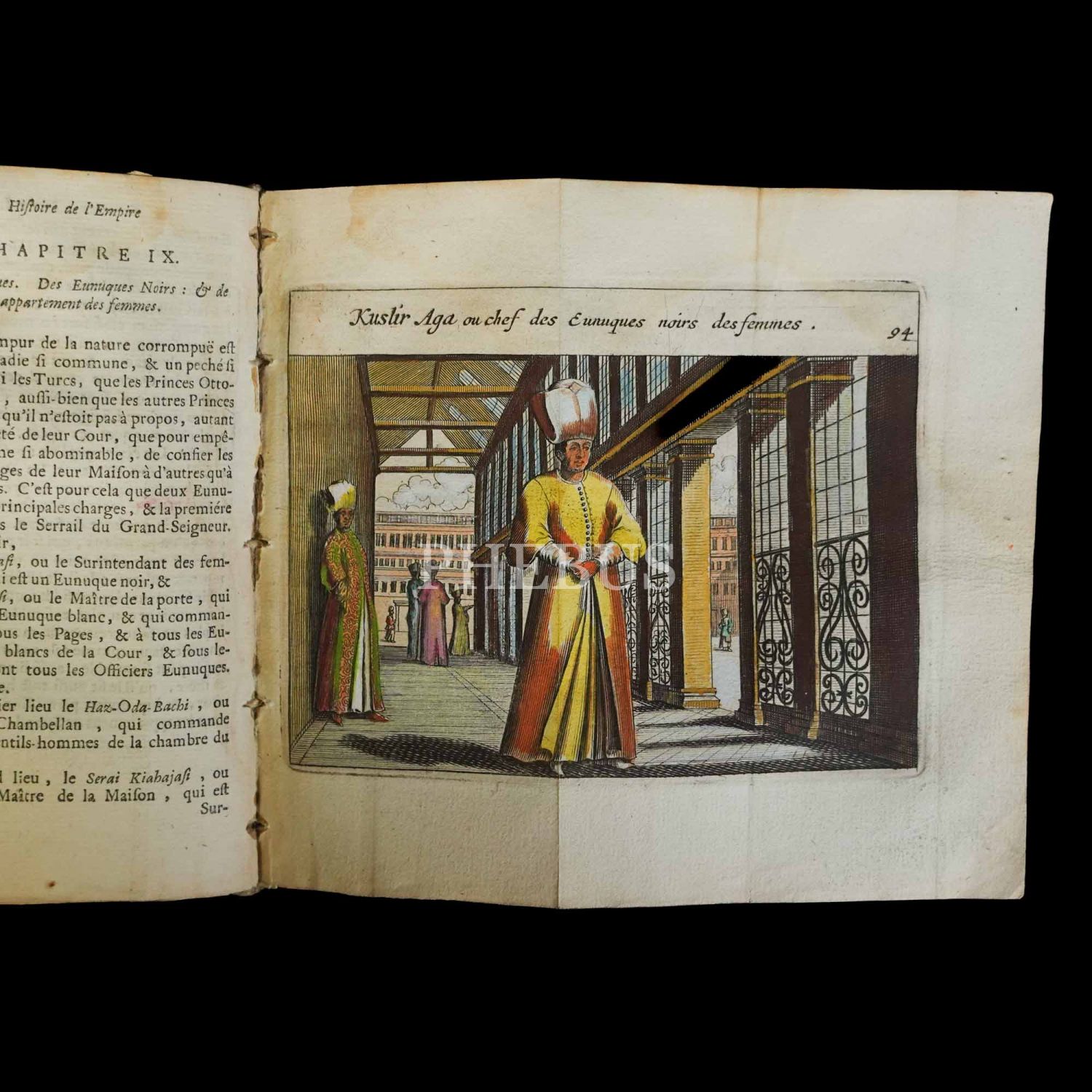 İngiliz diplomat, tarihçi ve Osmanlı İmparatorluğu uzmanı Sir Paul Rycaut (1629-1700) tarafından kaleme alınan ve Osmanlı İmparatorluğu´nun o dönemdeki durumunu tahlil eden eserin Fransızca çevirisi. Alanının en muteber eserlerinden biri olarak halen daha araştırmacıların en çok başvurduğu kaynaklar arasında yer alan kitap; Türklerin politikaları, İslam dininin imparatorluğa etkileri ve Osmanlıların askeri disiplini olmak üzere üç bölümden meydana gelmektedir. Kitap içinde Osmanlı kostümlerine dair 14 adet katlanır renkli gravür yer almaktadır... Kapakları ebrulu deri dönem cildinde.