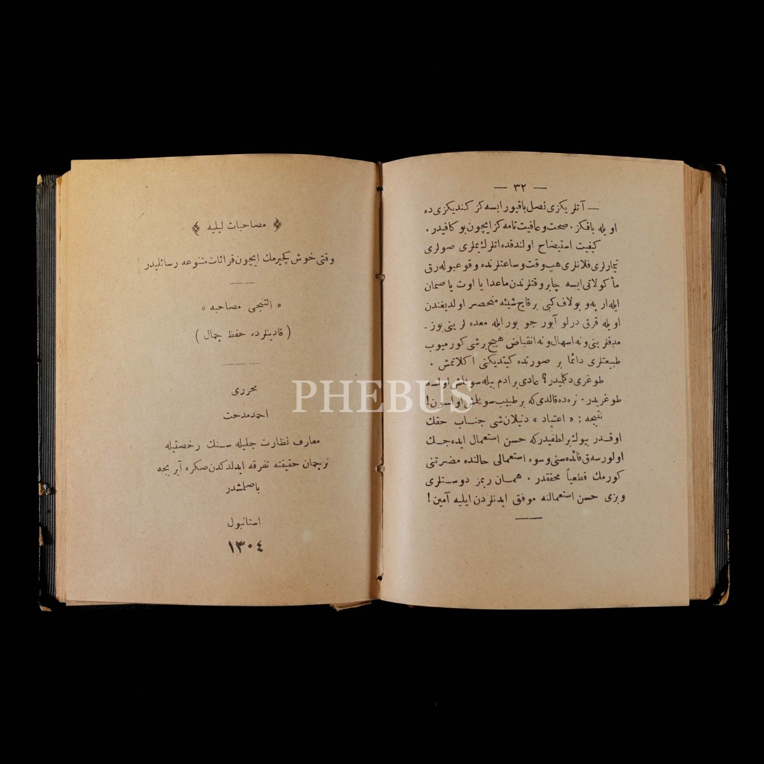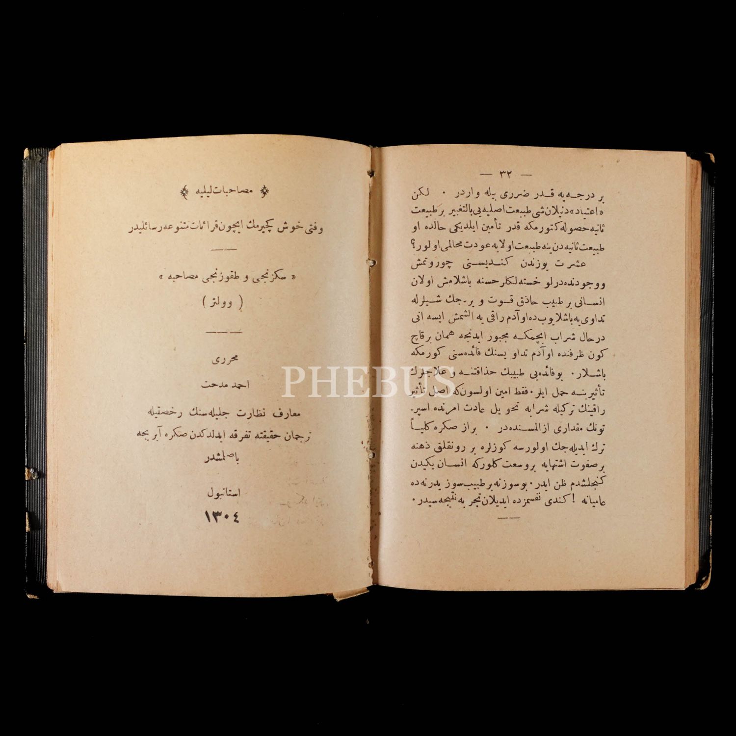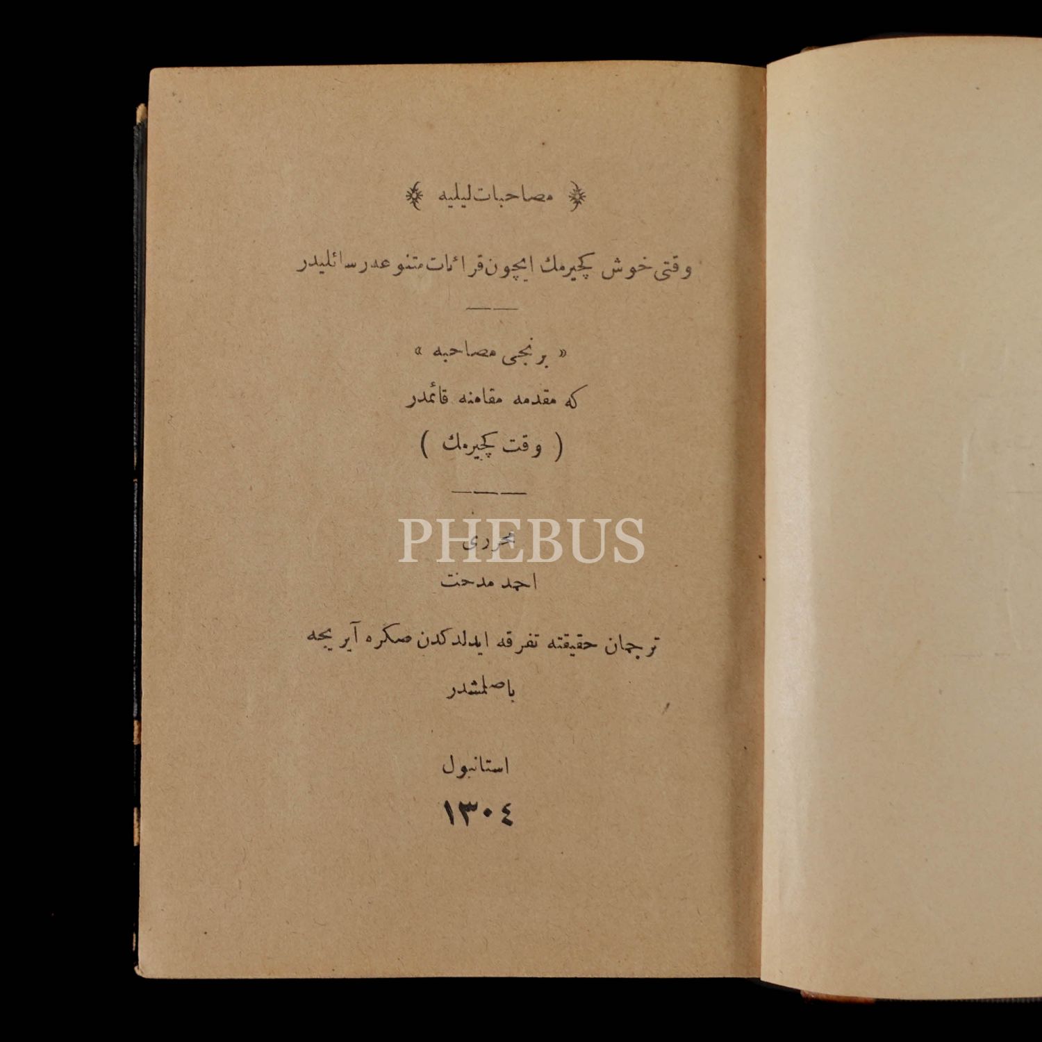MUSAHABAT-I LEYLİYE, Ahmet Mithat, 1304, "Tercüman-ı Hakikat Gazetesi´nde tefrika edeildikten sonra ayrıca basılmıştır.", 285 sayfa, 16x12 cm...